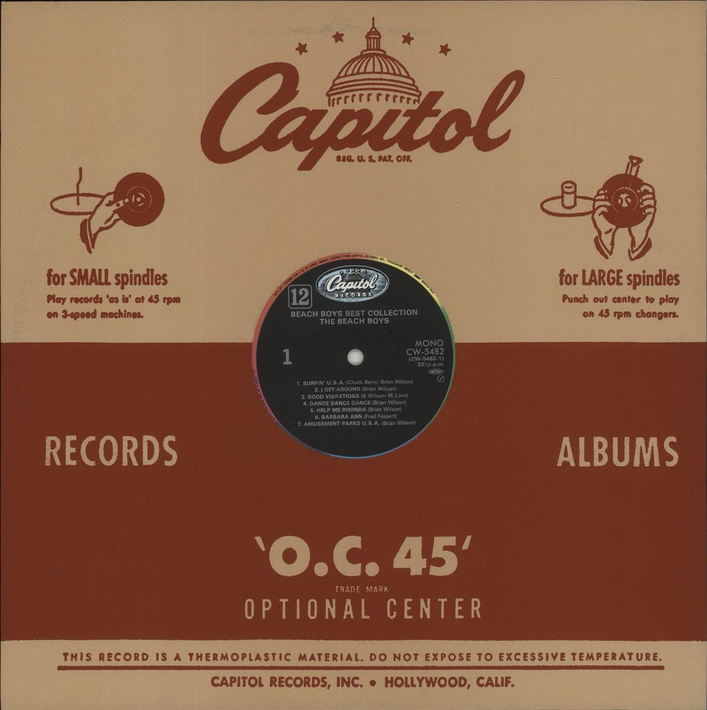 THE BEACH BOYS Beach Boys Collection (Rare 1984 Japanese 14-track vinyl LP compilation, originally part of a limited edition mail order 'Toshiba-EMI Family Club' Golden Hit Pops 186 box set, which features a collection of compilation albums from various artists including The Beatles, Rolling Stones, Ventures, Beach Boys, Bee Gees and more. Housed in a replica Capitol die-cut card sleeve, never issues with a picture sleeve or insert, and includes a 4" square drinks coasters, featuring artwork for the 'Surfin U.S.A.' single. The sleeve has minimal wear and the vinyl remains in a 'near mint' condition)