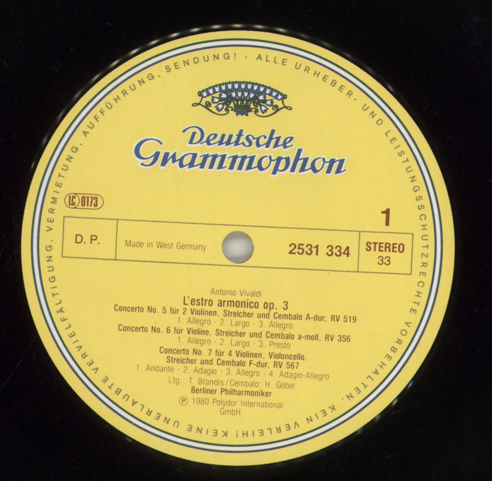 ANTONIO VIVALDI L'Estro Armonico (1980 German 19-track vinyl LP, with the Berliner Philharmoniker directed by Thomas Brandis and Leon Spierer, picture sleeve. The sleeve shows minimal wear and the vinyl appears barely played)