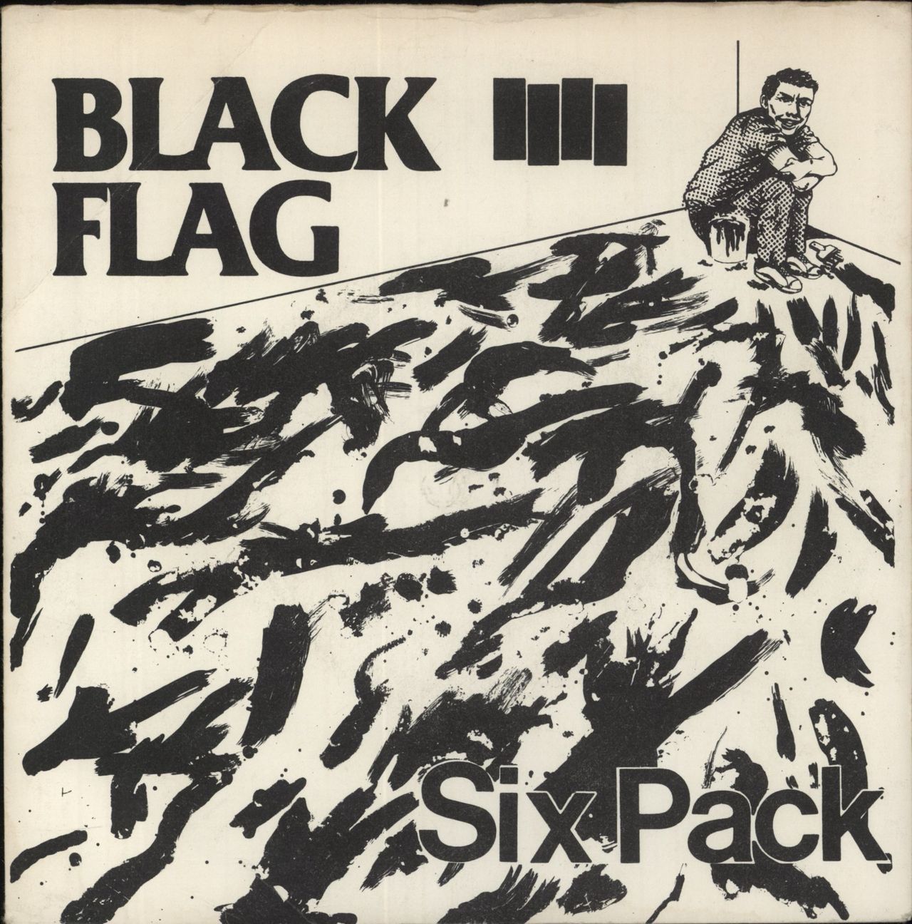 BLACK FLAG Six Pack (1982 UK issue 3-track 7" vinyl single on the Alternate Tentacles label, also including I've Heard It Before and American Waste, picture sleeve with lyrics on the reverse. The sleeve has a little light wear on the opening edge and some other minor signs of wear. The vinyl remains in Excellent condition)