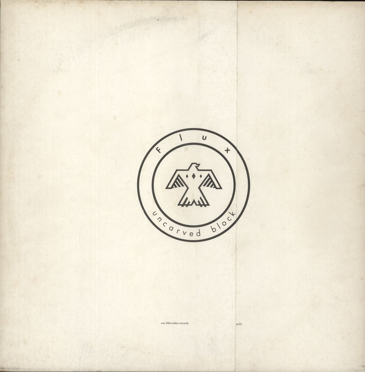 FLUX Uncarved Block (1986 UK One Little Indian label 8-track LP including The Value Of Nothing & Youthfull Immortal, fold-out custom picture sleeve with printed inner sleeve. The sleeve shows some typical shelfwear and discolouration and the vinyl remains in Excellent condition)