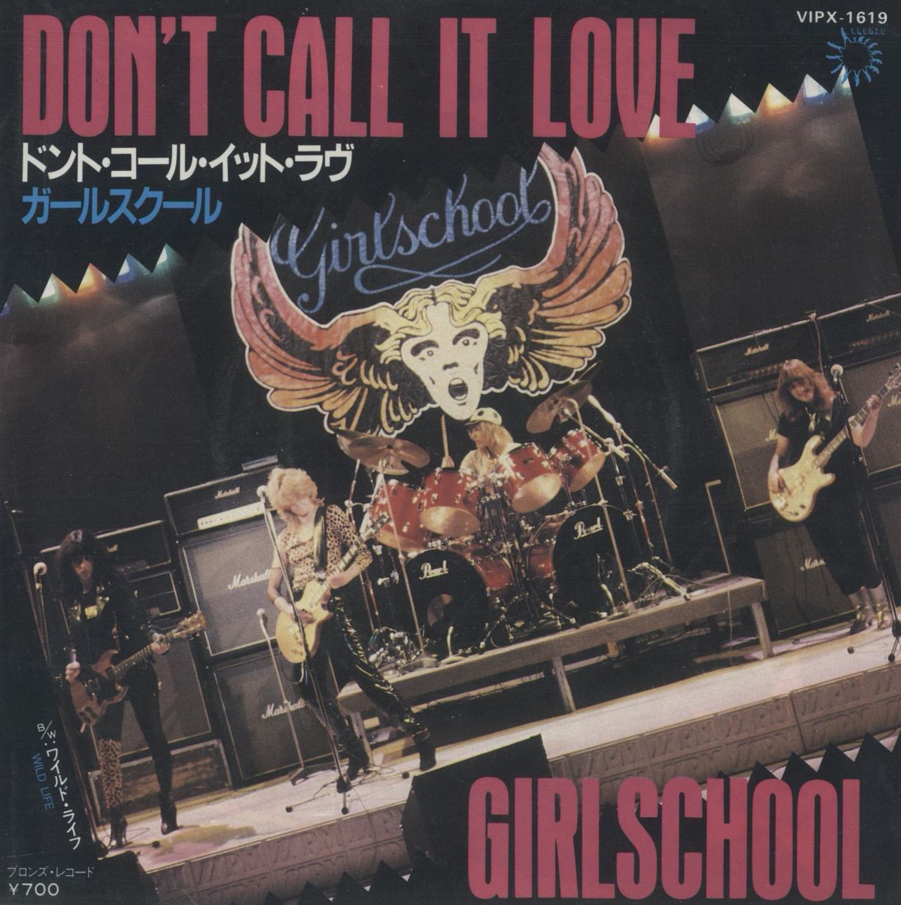 GIRLSCHOOL Don't Call It Love (Rare Japanese white label promo sample 7" also with Wild Life, picture insert with lyrics on reverse, VIPX-1619)
