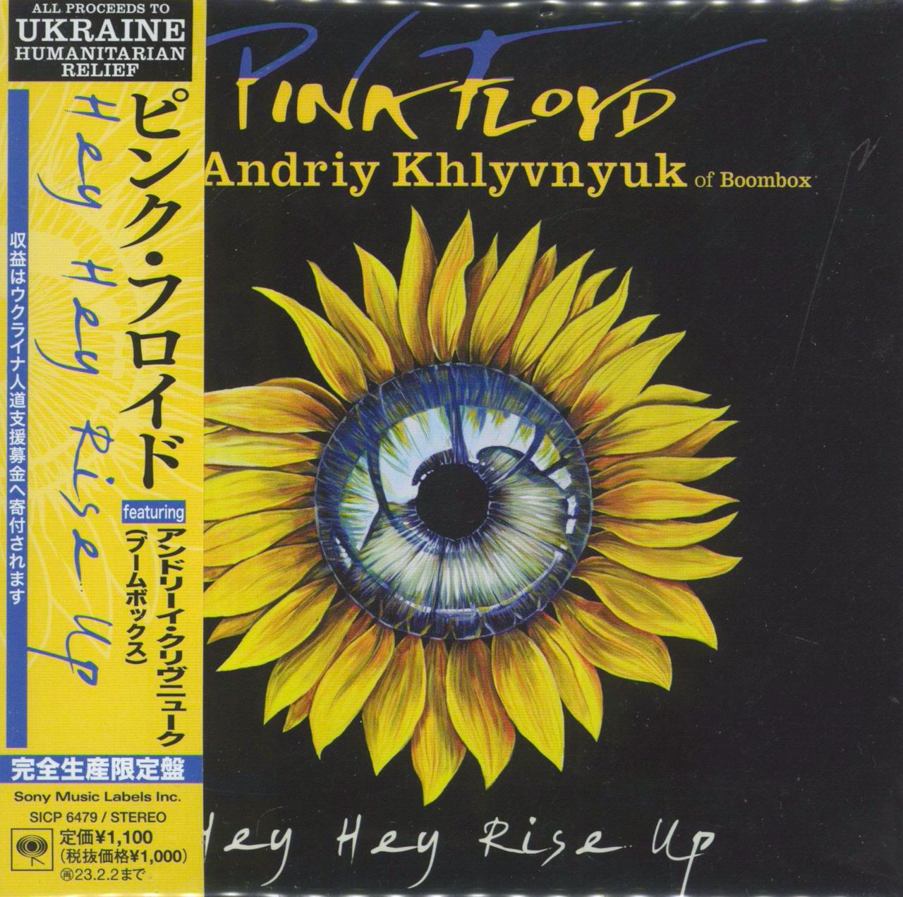 PINK FLOYD Hey Hey Rise Up (Deleted & out of print 2022 Japanese limited edition 2-track CD single. David Gilmour and Nick Mason are joined by long time Pink Floyd bass player Guy Pratt, with Nitin Sawhney on keyboards and a lead vocal by Andriy Khlyvnyuk of Ukrainian band Boombox. It also has vocal harmonies by Romany and David Gilmour. Also includes a reworked version of A Great Day For Freedom. Housed in a card wallet picture sleeve, with lyrics and obi-strip SICP-6479)