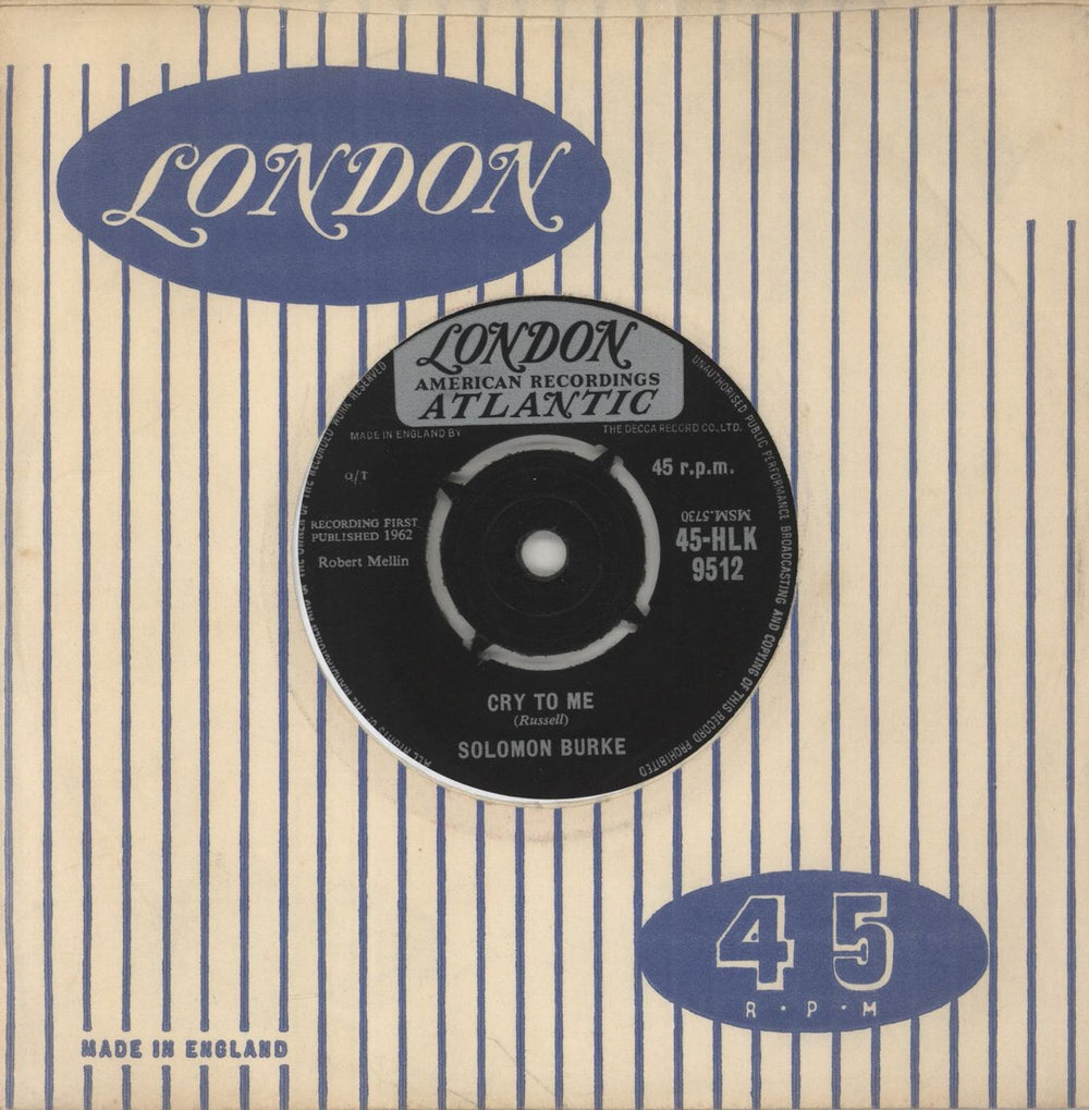 SOLOMON BURKE Cry To Me (Northern Soul Classic 1962 UK 7" single with four-prong centre, from one of the first performers to be dubbed a Soul artist - The song reached a new audience with its inclusion on the soundtrack to Dirty Dancing decades later. Also features the b-side 'I Almost Lost My Mind', London Records die-cut company sleeve. The vinyl is clean & grades VG/VG+ with some light paper hairlines which have little effect on play 45-HLK9512)