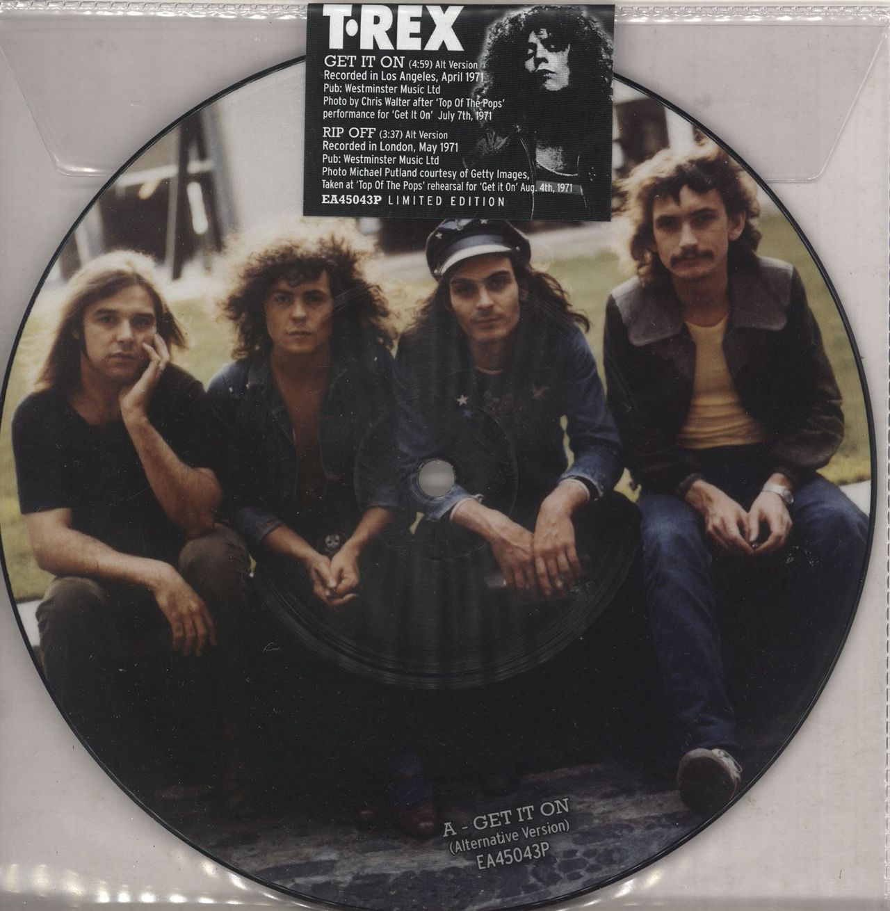 T-REX Get It On (2020 UK limited edition 7" Picture Disc single including alternate versions of both the title track and Rip Off, sticker sealed clear PVC envelope sleeve EA45043P)