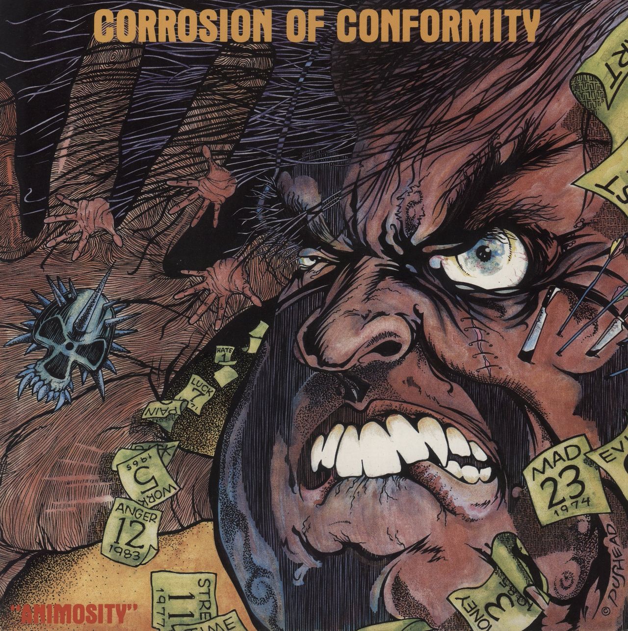 CORROSION OF CONFORMITY Animosity (1985 Dutch 10-track vinyl LP. The second studio album by American crossover hardcore band. Picture sleeve with artwork by Pushead, includes illustrated lyric inner. The sleeve displays little shelfwear and the vinyl has just light scuff marks - an Excellent copy RR9764)