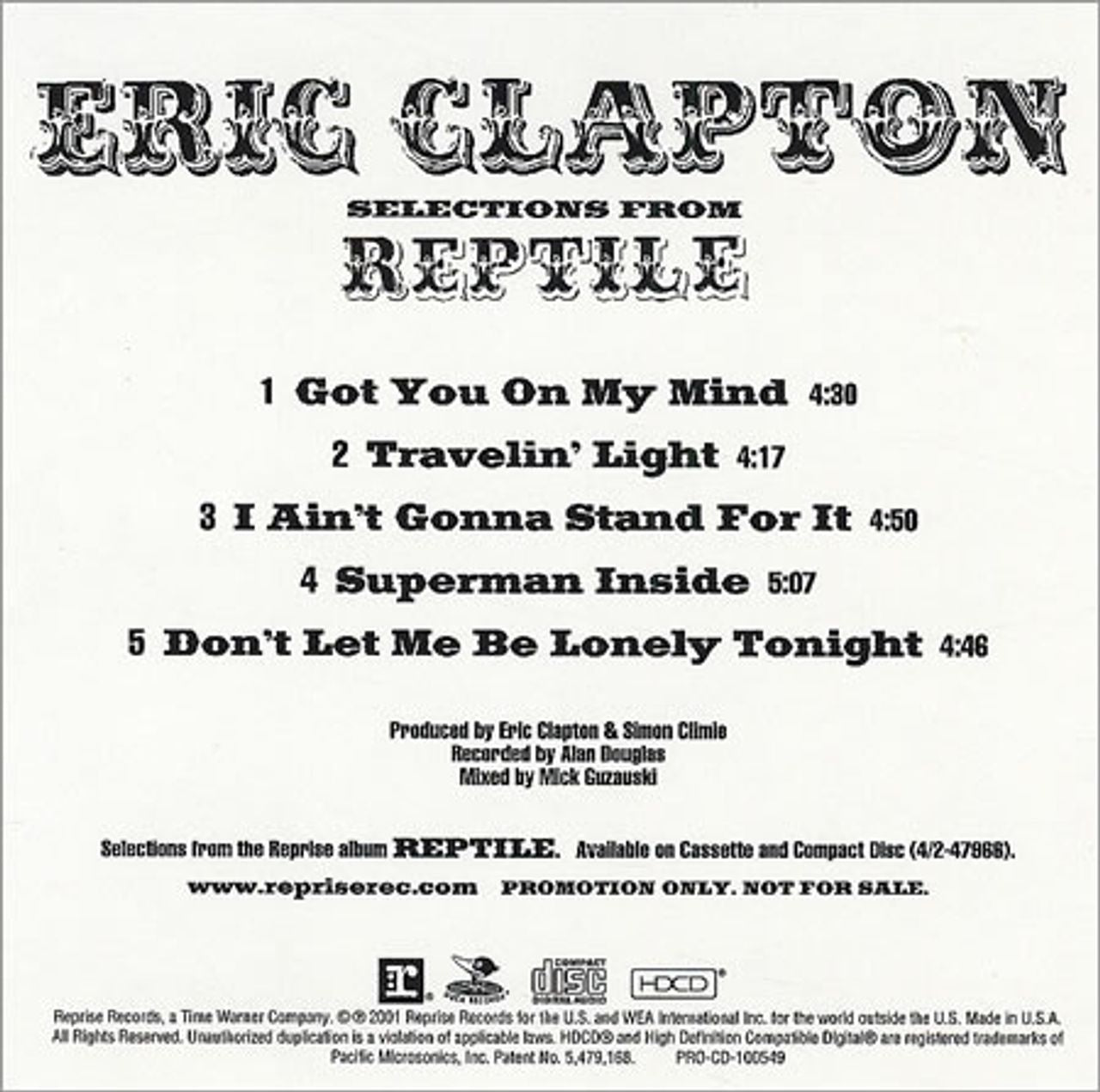Eric Clapton Selections From Reptile US Promo CD single