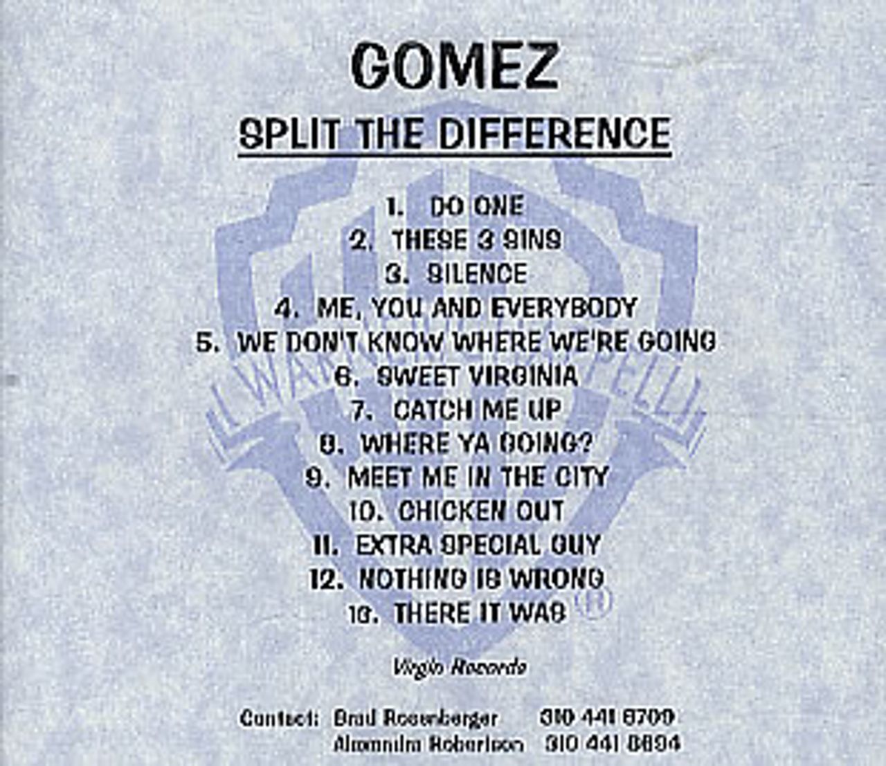 GOMEZ Split The Difference (2004 US 13-track promo-only Warner label CD-R acetate, custom printed disc stickered 'WB' Warner logo and title/tracklisting inlay)