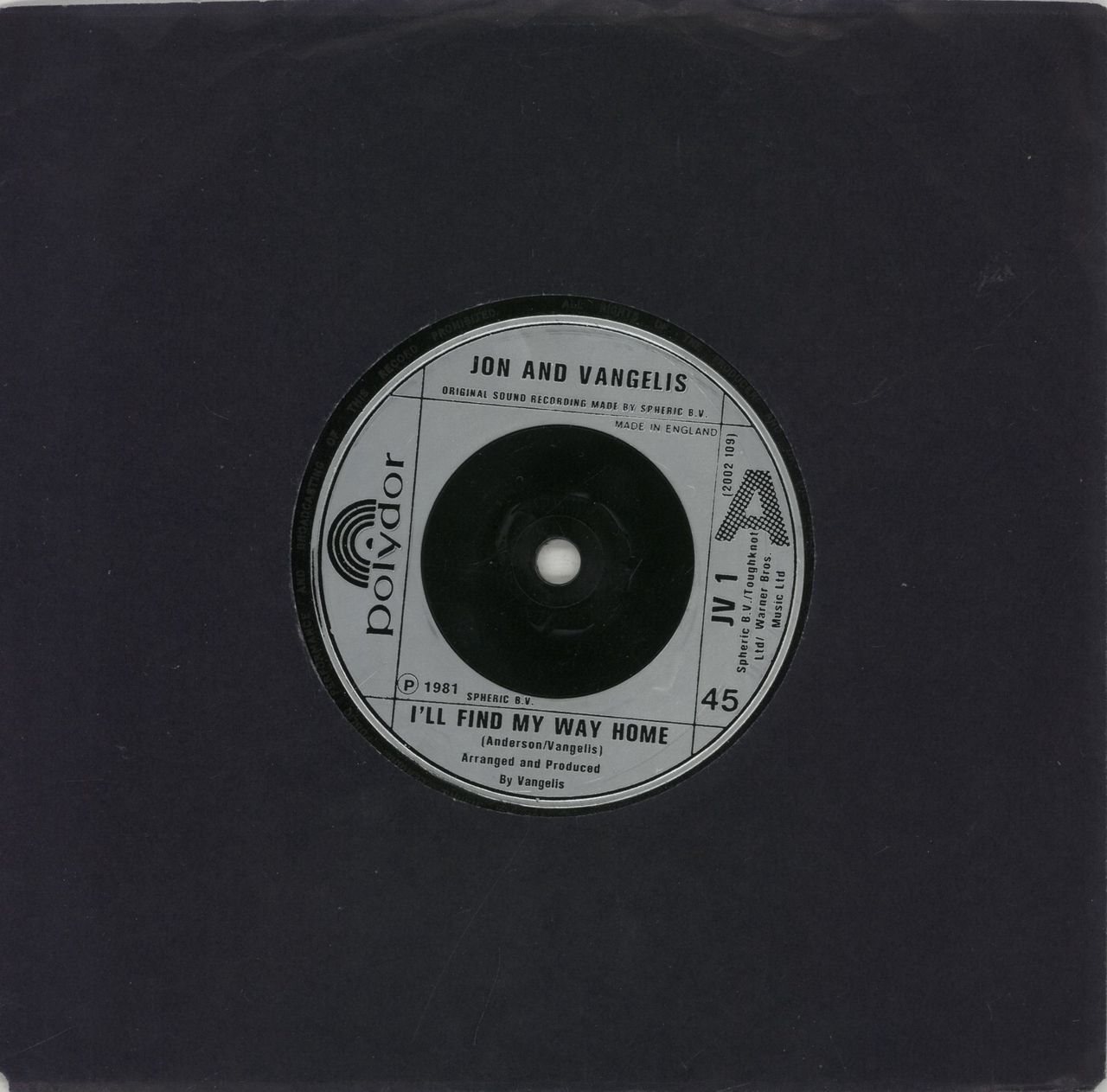 JON & VANGELIS I'll Find My Way Home (1981 UK injection moulded 7" vinyl single, also including Back To School, plain die-cut paper sleeve JV1)