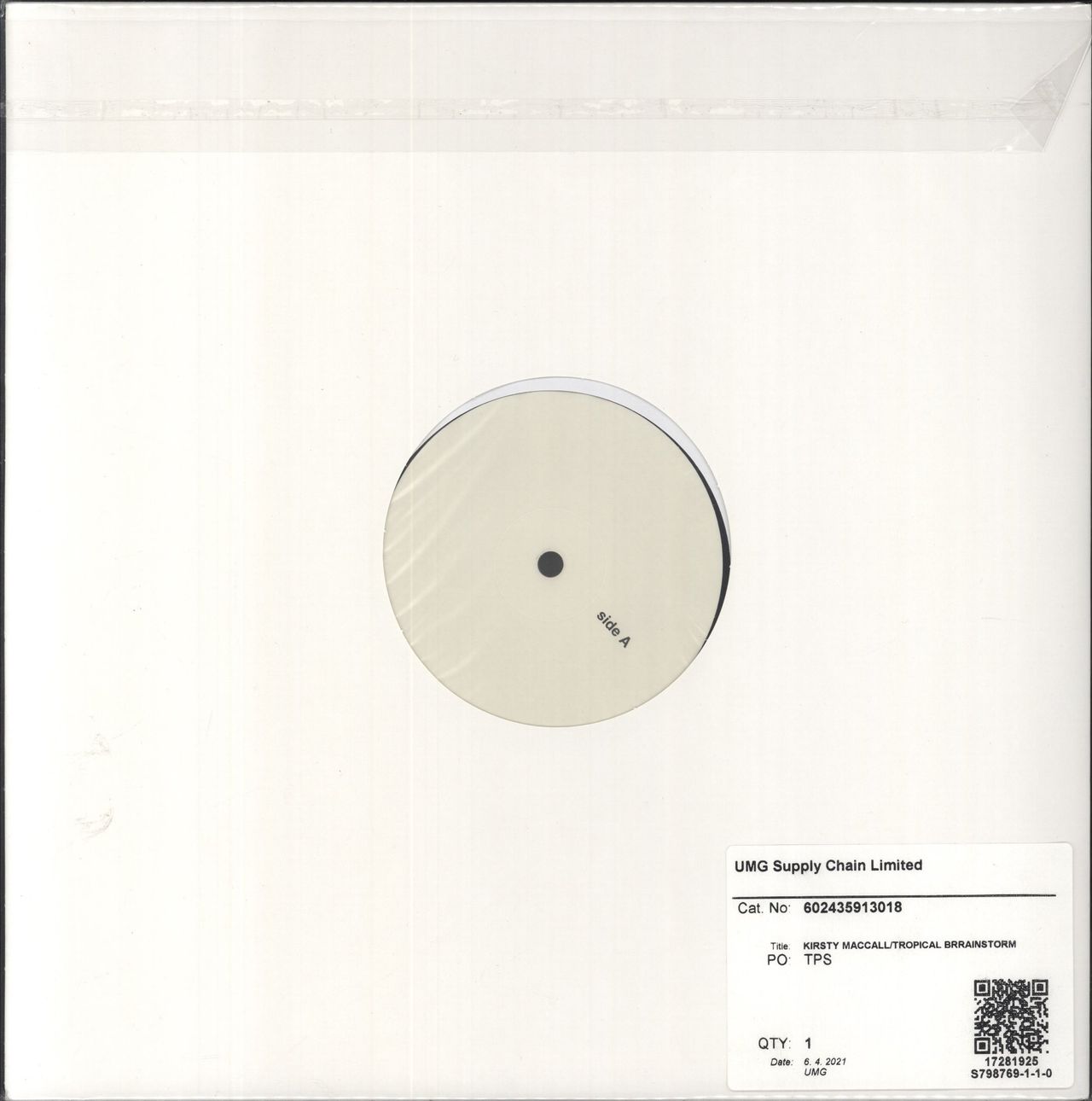 KIRSTY MACCOLL Tropical Brainstorm (Scarce 2021 UK 13-track BLACK VINYL TEST PRESSING LP for the limited edition National Album Day release that was commercially released on BLUE VINYL only. This was the first and only issue on vinyl. Housed in a plain die-cut card sleeve and in a custom stickered resealable bag. One of only a handful pressed, this item is in mint and unplayed condition)