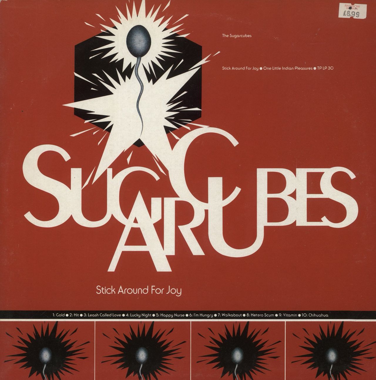 SUGARCUBES Stick Around For Joy (1992 UK 10-track vinyl LP, the third & final album from the Icelandic group fronted by Bjork. The top-opening picture sleeve has some light edge scuffing and a vintage price sticker affixed to the top right corner while the vinyl has light signs of play but remains in excellent condition)