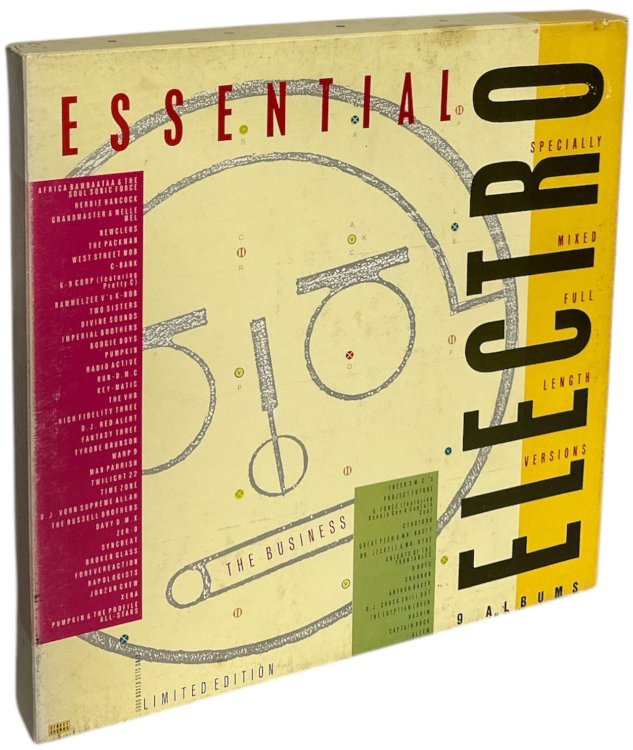 VARIOUS ARTISTS Essential Electro | The Business (1984 UK limited edition Nine Vinyl LP box set, consisting of Electro 1, 2, 3, 4 & 5, Crucial Electro 1 & 2, UK Electro and a Bonus Break (Hip-Hop On Wax) compilation albums, all housed in a picture card box with track details on the reverse. The box displays some minor age wear with some edge & corner scuffing, and the vinyl has minimal signs of play, overall an Excellent example)