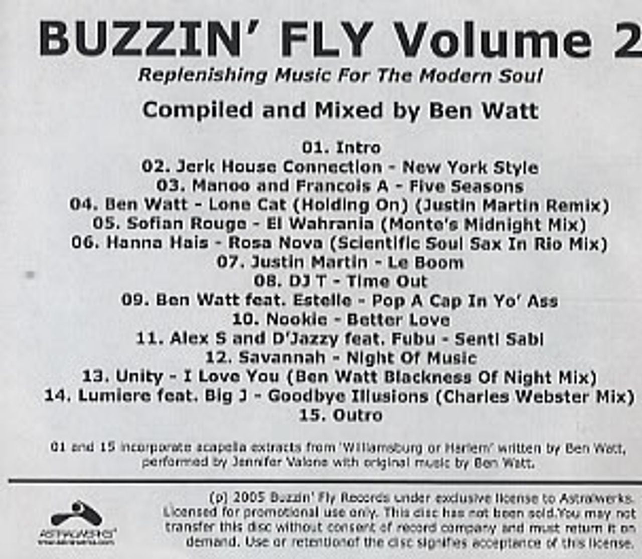 BEN WATT Buzzin' Fly Volume 2 (2005 US Astralwerks 15-track CD-R