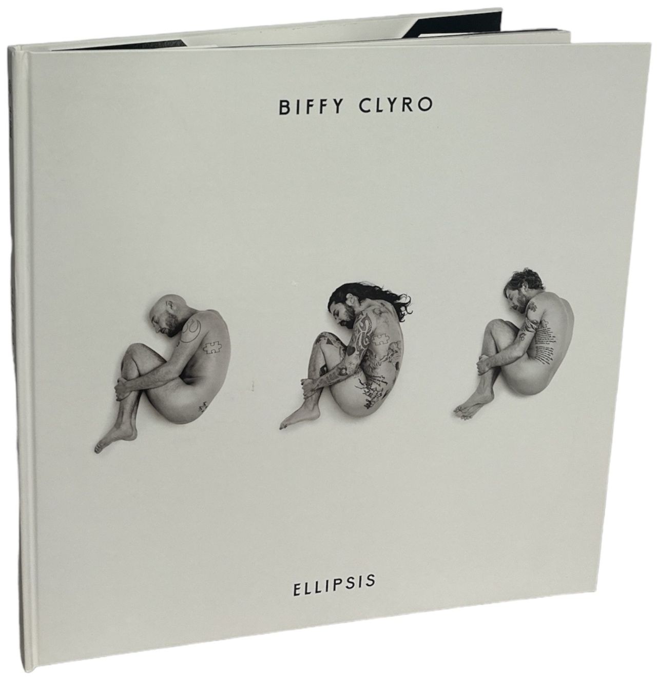 BIFFY CLYRO Ellipsis (2016 UK Online Exclusive Deluxe Edition 13-track 2-LP set pressed on 180gram Vinyl. The seventh studio album from the Scottish rockers. Housed in a 12" x 12" deluxe hardcover book featuring photos and lyrics, bonus one sided 'Wolves of Winter' 7" vinyl single, a piece of hand-written lyric from Simon, and three high quality prints, one signed by Ben in a black marker pen. Although not sealed, remains in a 'near mint' condition)