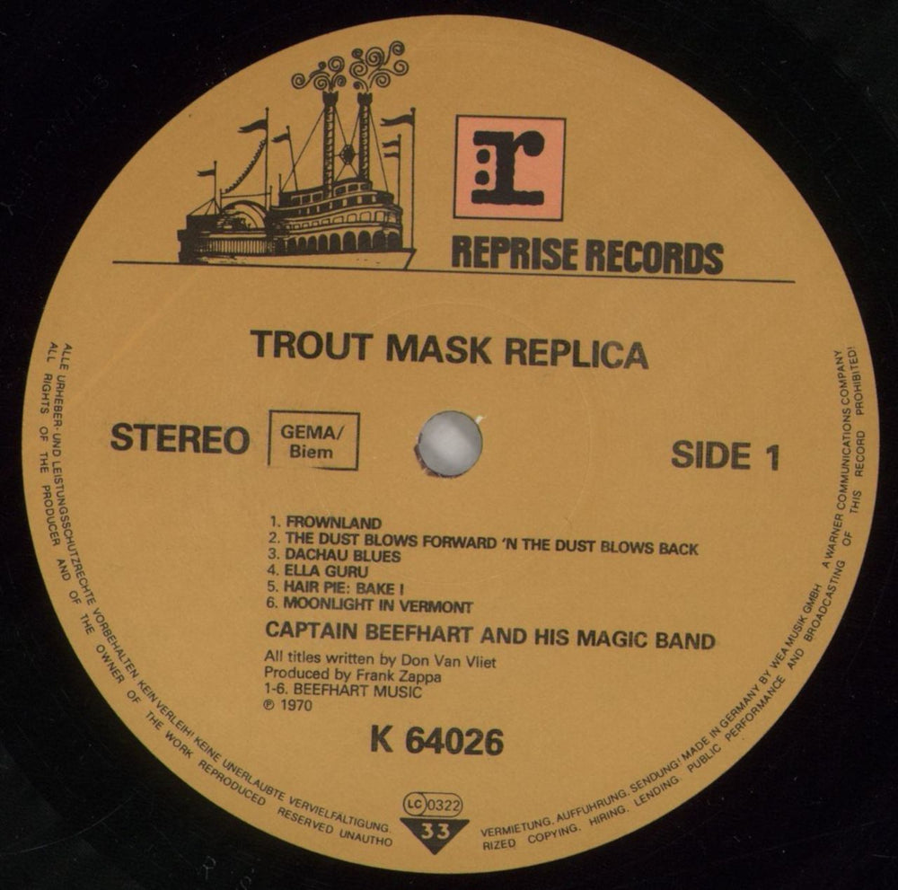 CAPTAIN BEEFHEART & MAGIC BAND Trout Mask Replica (80s German issue of the 1969 28-track double LP, Beefheart's Dadaist masterpiece produced by Frank Zappa, housed in a glossy & NON-barcoded gatefold sleeve replicating all the original artwork. The sleeve has a little edgewear and the vinyl is Excellent with few signs of play K64026)