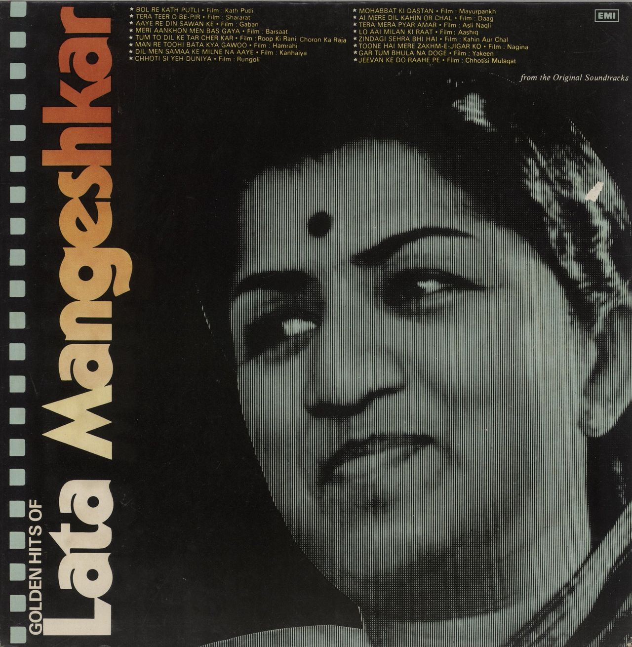 LATA MANGESHKAR Golden Hits Of Lata Mangeshkar (1983 Indian 16-track vinyl LP compilation, featuring soundtracks from Barsaat , Roop Ki Rani Choron Ka Raja, Hamrahi, Daag and Asli Naqli, pasted picture sleeve. The sleeve has a small tear to the front and an address label to the reverse, whilst the vinyl is Excellent & appears barely played G/ECLP5901)