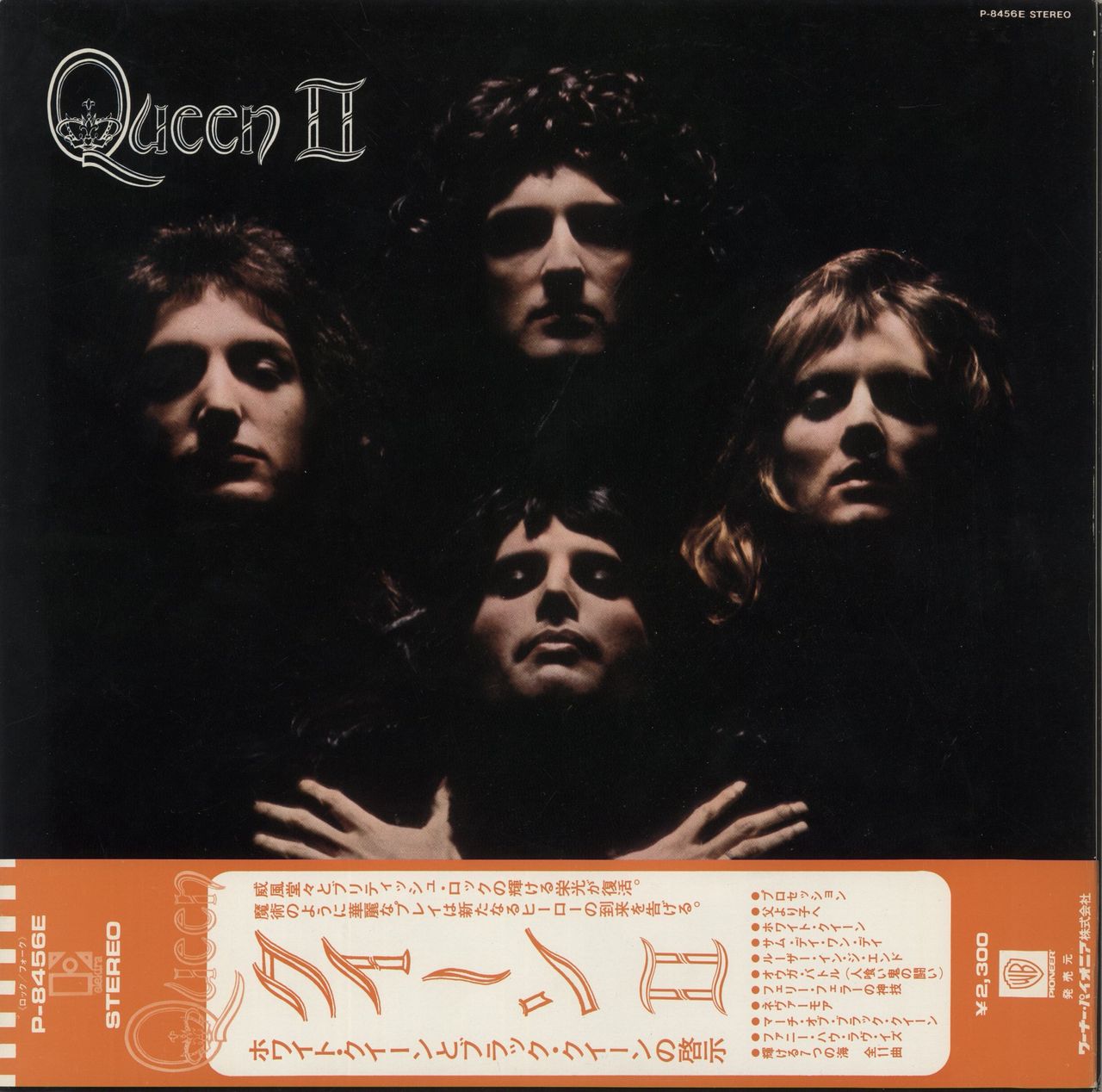 QUEEN Queen II (1974 Japanese 'butterfly' label 11-track LP pressed by Warner-Pioneer, housed in a heavyweight pasted gatefold picture sleeve with illustrated fold-out lyric insert & band logo obi-strip. The sleeve displays some light age wearmostly to the corners, and the vinyl displays mininal signs of play, a really nice example P-8456E)