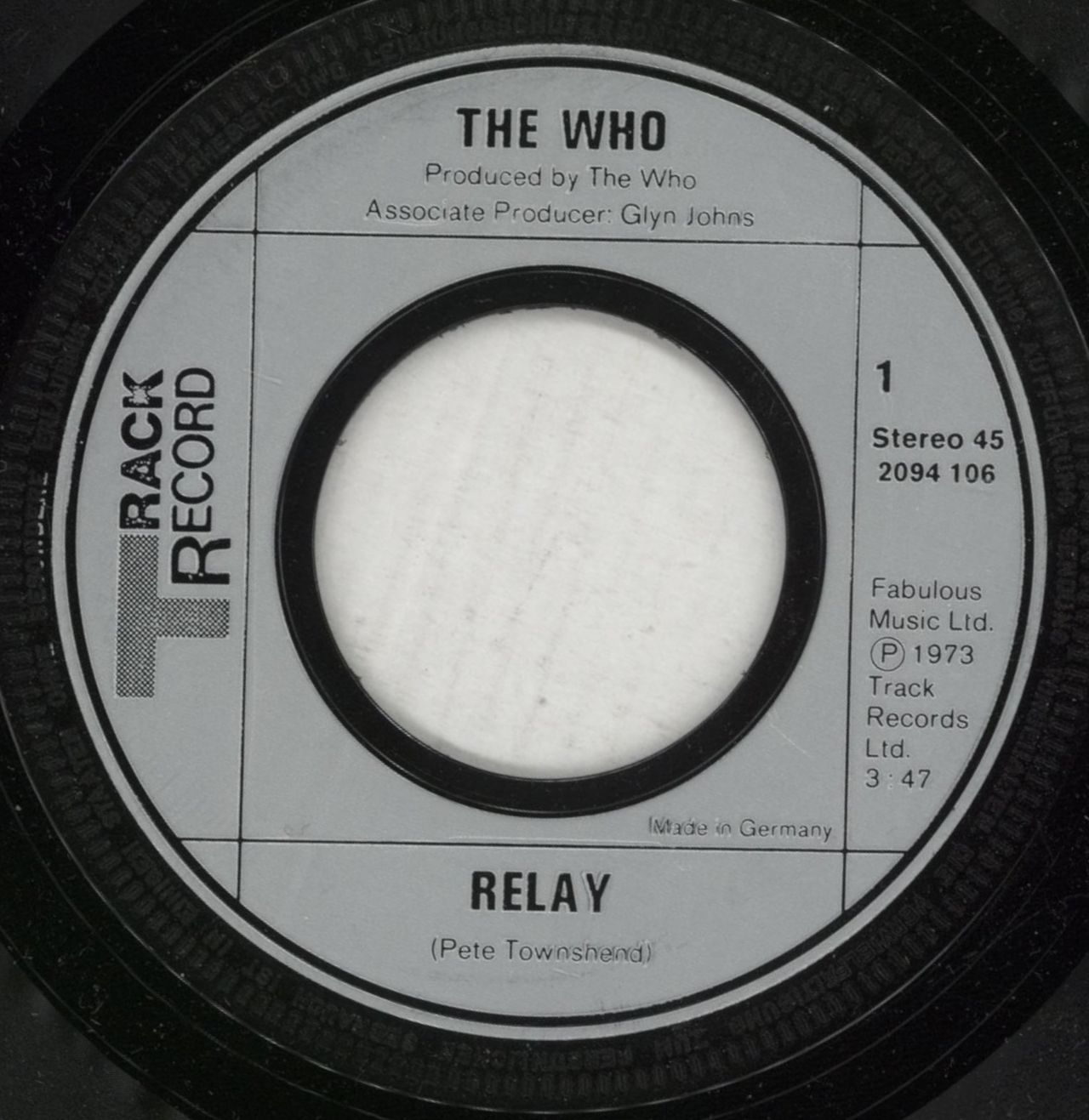 THE WHO Relay (1972 UK Track silver label wide centred 7" vinyl single, also includes Waspman, plain die-cut paper sleeve)