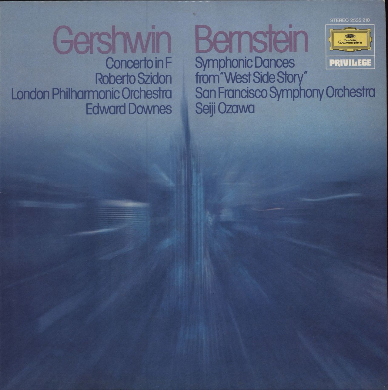 VARIOUS Gershwin: Concerto In F / Bernstein: Symphonic Dances From 'West Side Story' (1976 UK Stereo LP featuring Roberto Szidon [Piano] with The London Philharmonic Orchestra conducted by Edward Downes on the Gershwin Concerto & The San Francisco Symphony Orchestra conducted by Seiji Ozawa on the second side, picture sleeve. The sleeve shows just a little light shelfwear & the vinyl is flawless)