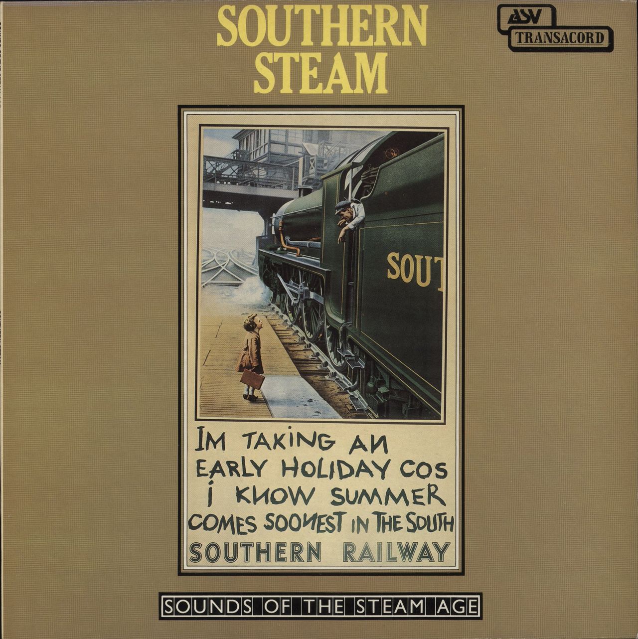 VARIOUS-TRAINS Southern Steam (1981 UK 7-track vinyl LP, Southern Railway Steam Locomotives at work on British Railways in the 1950's, glossy picture sleeve. Both the sleeve & vinyl are Near Mint ATR7006)