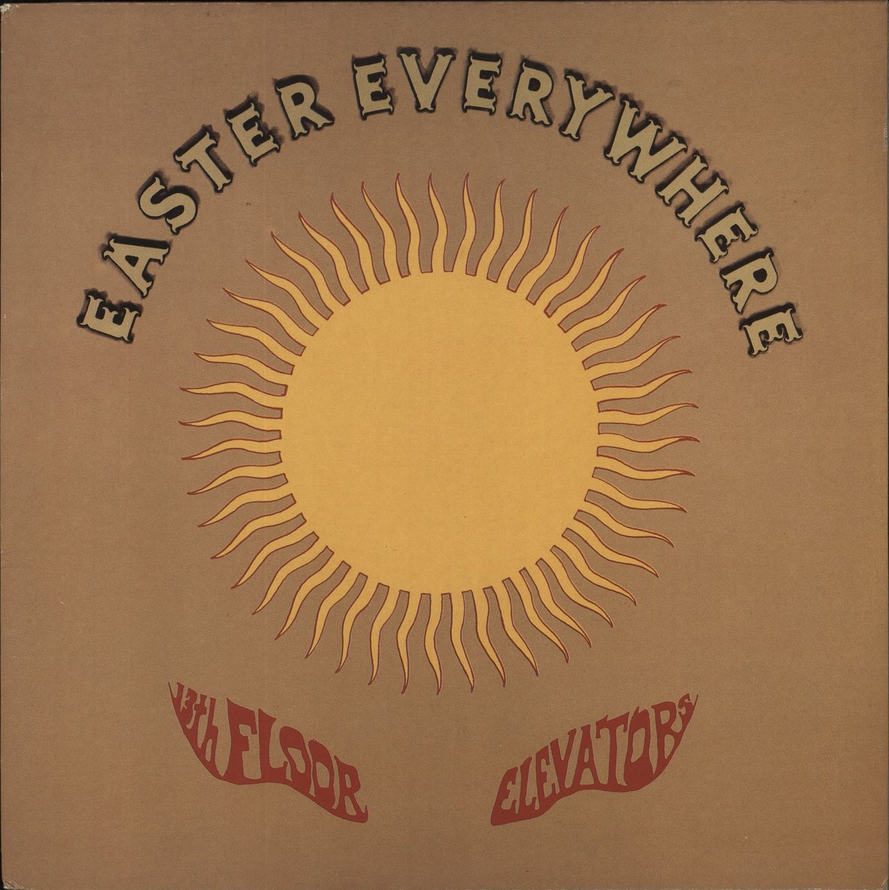 13TH FLOOR ELEVATORS Easter Everywhere (1988 UK issue of the 1967 10-track vinyl LP, stone-cold classic psychedelic long player from Roky Erikson and Co., includes the seminal 'Levitation' and 'Slip Inside This House' [as covered by Primal Scream], picture sleeve. The sleeve shows a little shelf wear and a couple of corner bumps. The vinyl shows the odd cosmetic paper mark and minimal signs of play LIK2)
