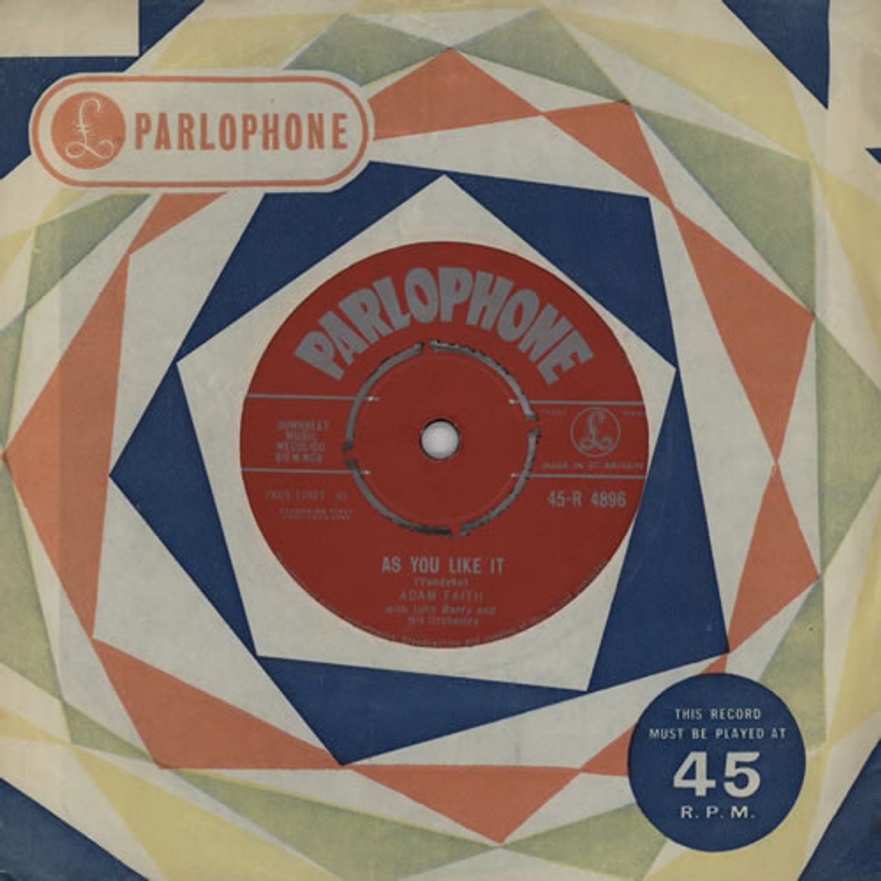 ADAM FAITH As You Like It (1962 UK 7" vinyl single with intact four prong centre, also including Face To Face, Parlophone company die cut paper sleeve 45-R4896)