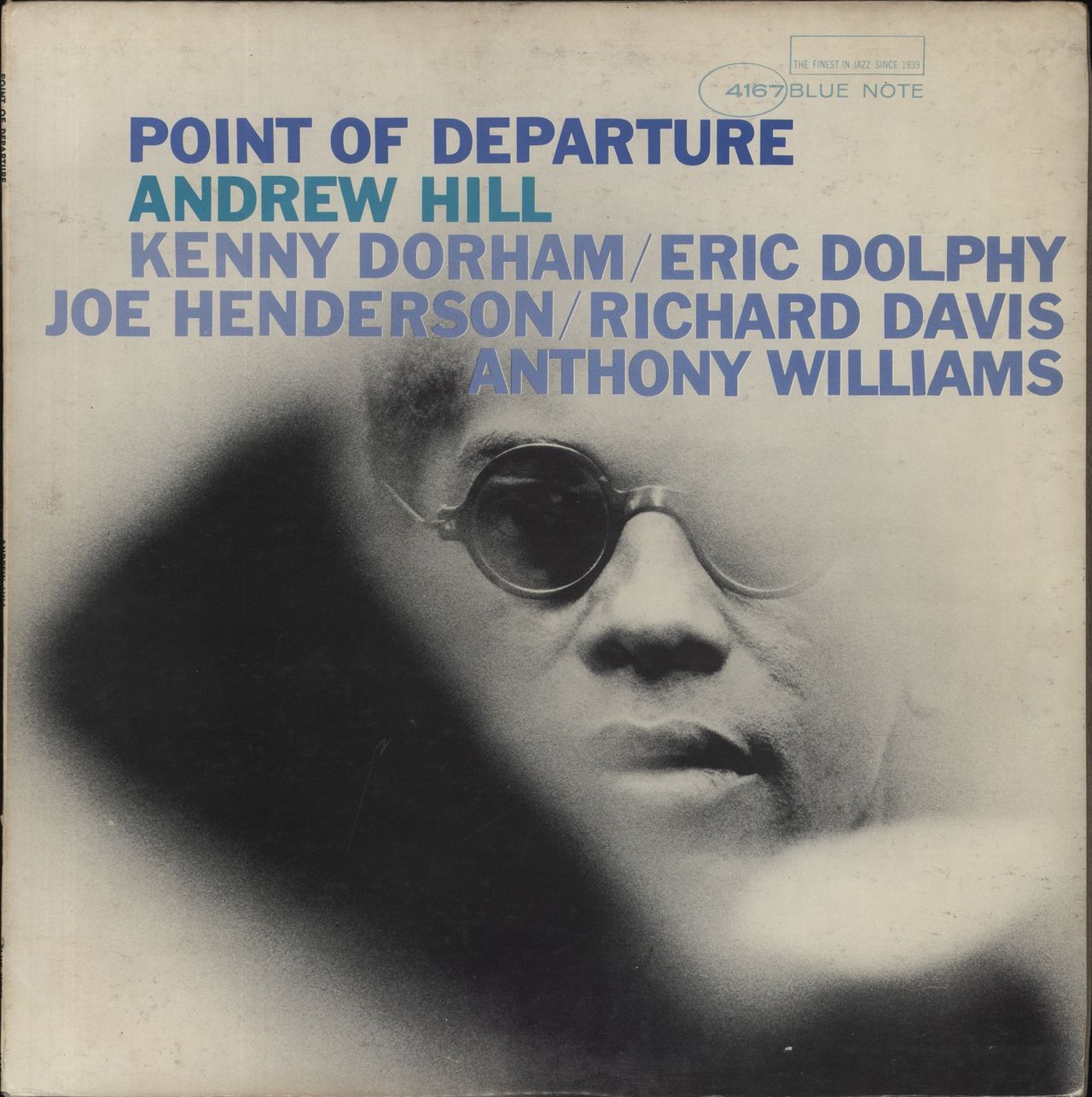 ANDREW HILL Point Of Departure (1964 US first press 5-track mono LP on the 'New York USA' address label, with the 'ear' markings & the 'Van Gelder' stamps in the run-outs. This is still one of the ultimate Blue Note dates that pointed the way to the future for jazz, with expert backing from Eric Dolphy, Joe Henderson, Richard Davis & Anthony Williams. The cover grades VG with light natural discolouring, light edge scuffing & all text is legible - still with Mecolico import sticker to back. The heavyweight vinyl grades VG+ & displays light cosmetic wear on both sides but this has little effect on play. A nice example & as a first issue, this is a must own for the Blue Note collection BLP4167)