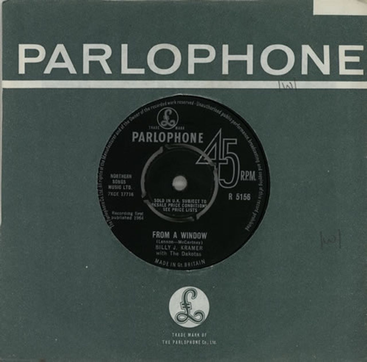 BILLY J. KRAMER & THE DAKOTAS From A Window (1964 UK 7" vinyl single written by Lennon & McCartney, with intact four prong centre and 'Recording First Published' & 'Sold In The UK' label text, also including Second To None. Issued in the Parlophone company die-cut paper sleeve and with just a few light spindle marks and surface scuffs to the show play, the vinyl remains in excellent condition for its fifty plus years R5156)