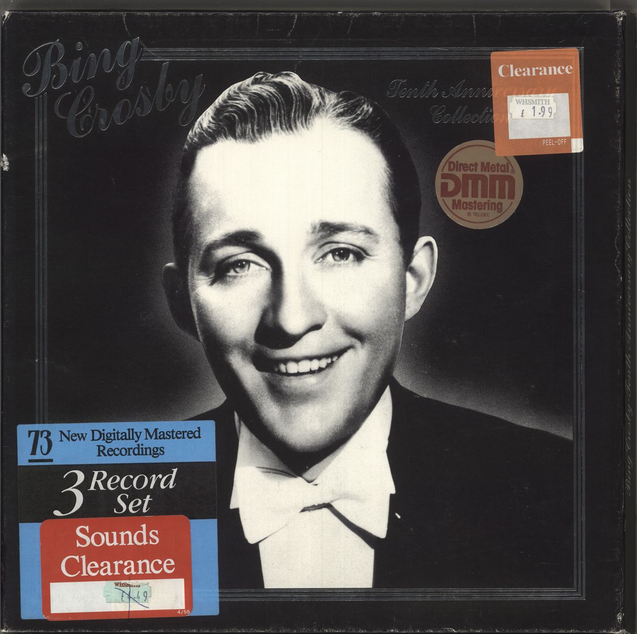 BING CROSBY The 10th Anniversary Collection (1987 UK Direct Metal Mastered 73-track 3-LP box set, housed in a stickered 12" square silver bordered & embossed box with fold-out liner notes insert. The box has a few light scuffs, whilst the vinyl is near mint WW1005)