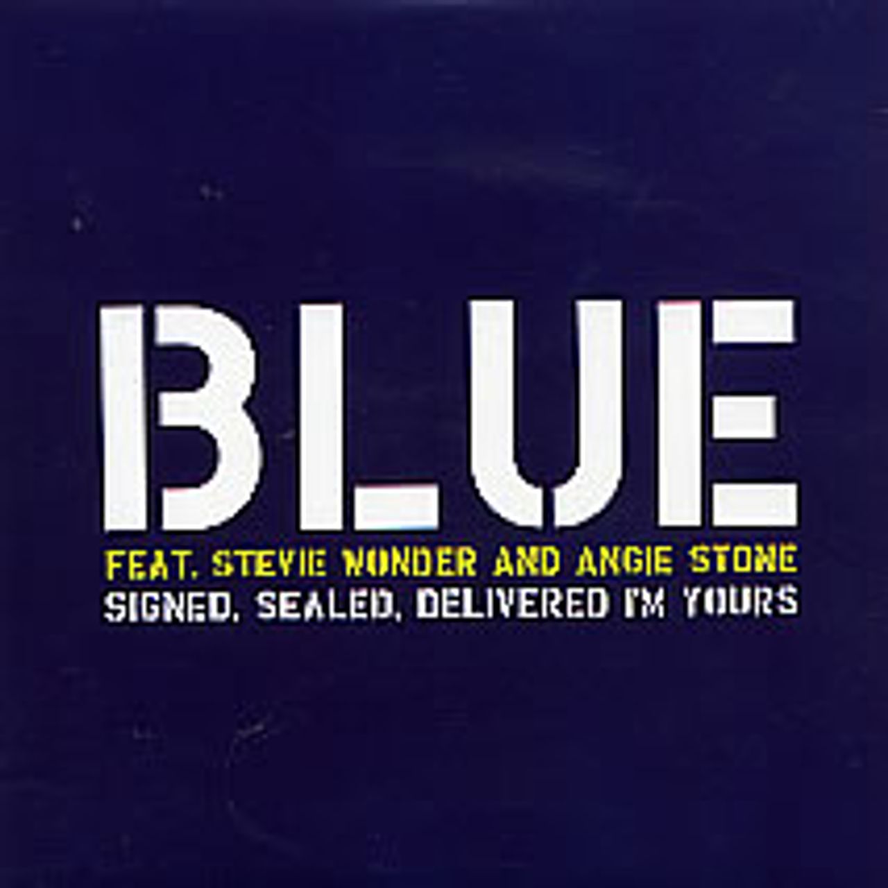BLUE featuring STEVIE WONDER AND ANGIE STONE Signed, Sealed, Delivered I'm Yours (2003 UK 1-track promotional CD featuring the boy band's return with a reworking of a classic number, collaborating with the man who made it all happen; Stevie Wonder. Custom printed disc housed in a card picture sleeve SINCDJ54)