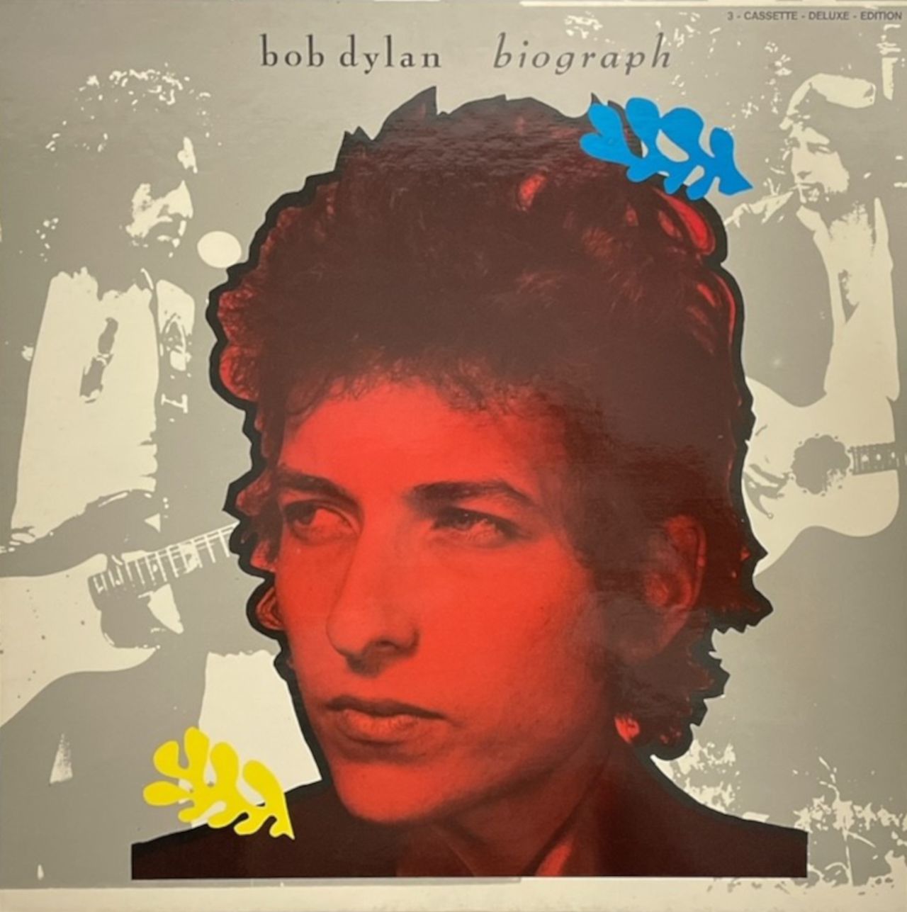 BOB DYLAN Biograph (1985 UK deluxe edition 3 x cassette box set, includes 53 songs featuring 21 rare & unreleased tracks from 1961 to 1981, plus 36-page colour booklet with photos and 12-page credit and notes booklet by Bob! The box has one very small dent to the top edge with some edge scuffing, the contents appear in Excellent condition with some light foxing to the inserts)