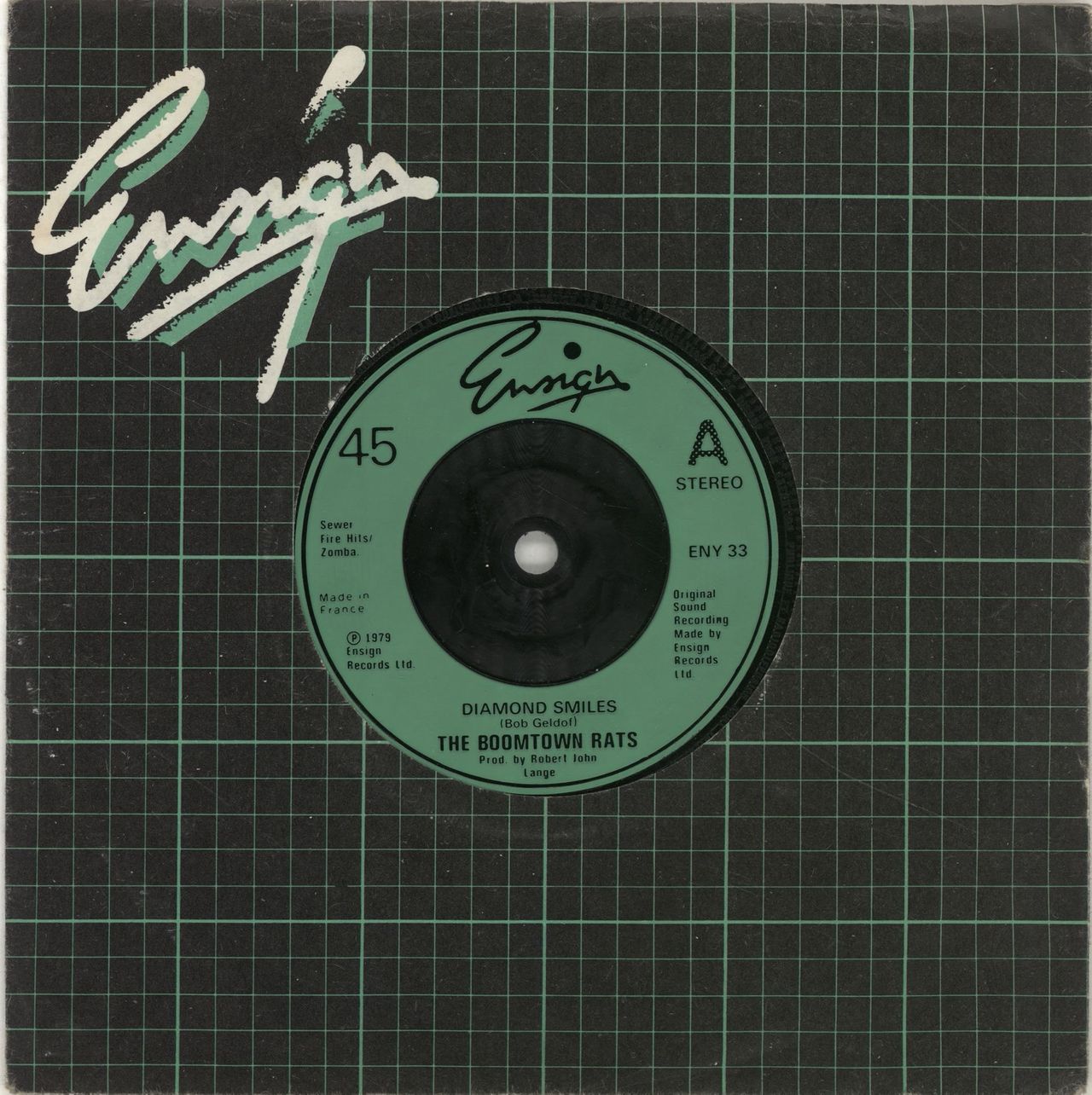 BOOMTOWN RATS Diamond Smiles (1979 French-pressed injection moulded 7" vinyl single, also including Late Last Night, Ensign die-cut paper sleeve ENY33)
