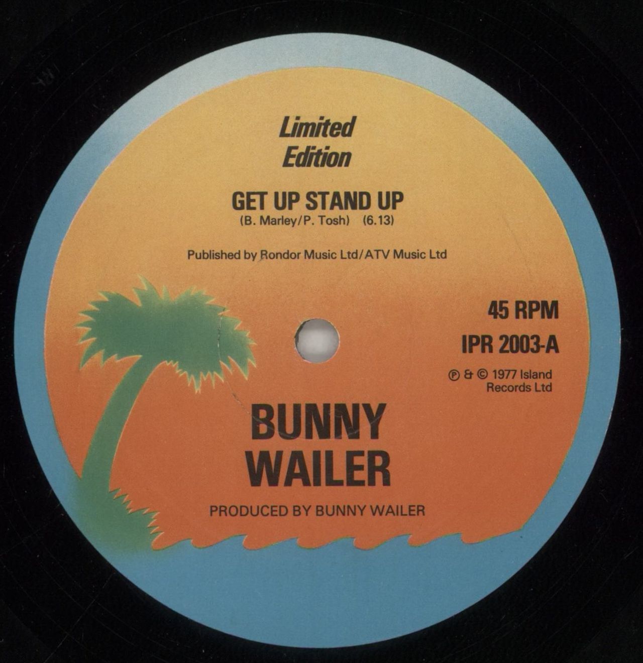 BUNNY WAILER Get Up, Stand Up (1977 UK limited edition 12" vinyl single, also featuring This Train, plain die-cut card sleeve IPR2003)