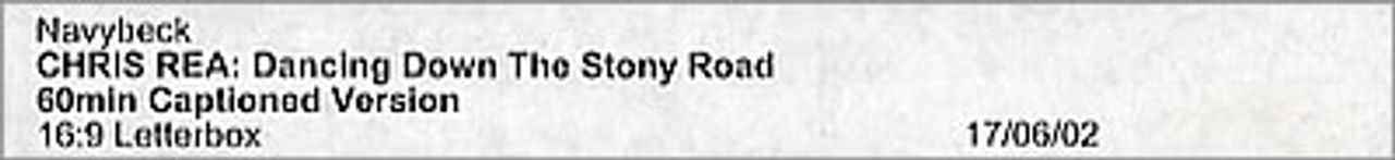 CHRIS REA Dancing Down The Stony Road (2002 UK 60 minute Captioned Version promo PAL video in 16:9 letterbox format of the DVD only release!, custom printed labels)