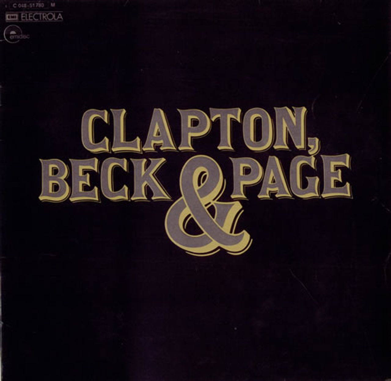 CLAPTON, BECK & PAGE Clapton Beck & Page (1973 German Electrola 11-track vinyl LP, pressed on orange Emidisc labels - a fantastic compilation of tracks featuring three of world's greatest guitarists: Jeff Beck, Eric Clapton and Jimmy Page; issued in afront laminated picture sleeve, with sleevenotes in both English and German. The sleeve shows some light signs of laminate creasing, but the vinyl is in superb condition)