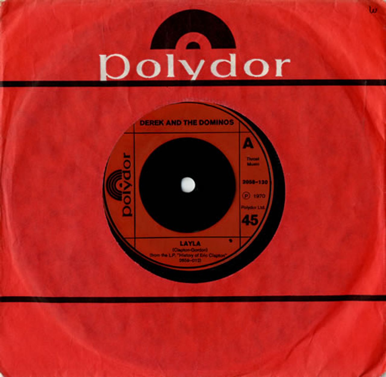 DEREK & THE DOMINOS Layla (Mid 70s UK injection moulded issue of the classic 1970 7" vinyl single, also including Bell Bottom Blues, Polydor company die cut paper sleeve)
