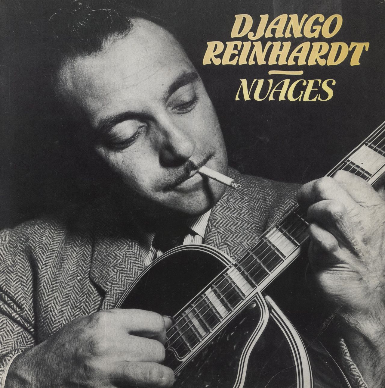 DJANGO REINHARDT Nuages (1984 Swiss 12-track vinyl LP compilation, picture sleeve. The sleeve shows light wear and some paper loss and sticker residue from sticker removal, whilst the vinyl has just a few light scuffs to indicate play, therefore remaining in Excellent condition)