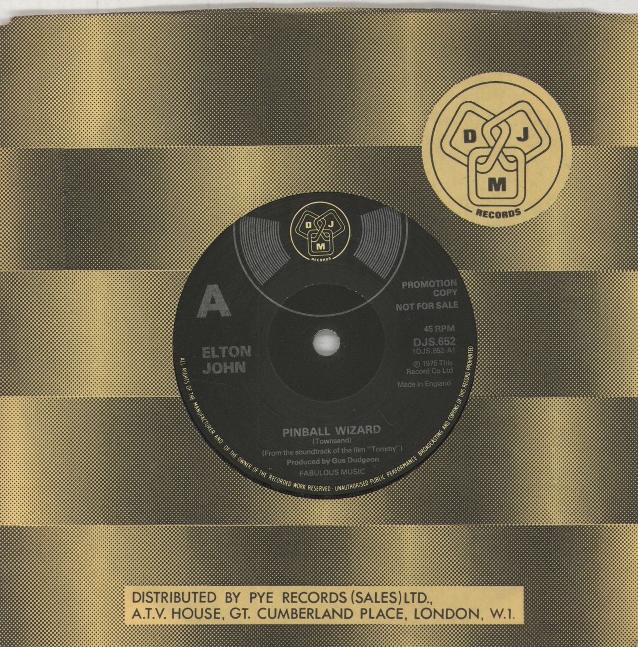 ELTON JOHN Pinball Wizard (1975 UK solid centre promotional vinyl 7" for the single release, also including Harmony, DJM die-cut company paper sleeve. This copy is Near Mint DJS.652)