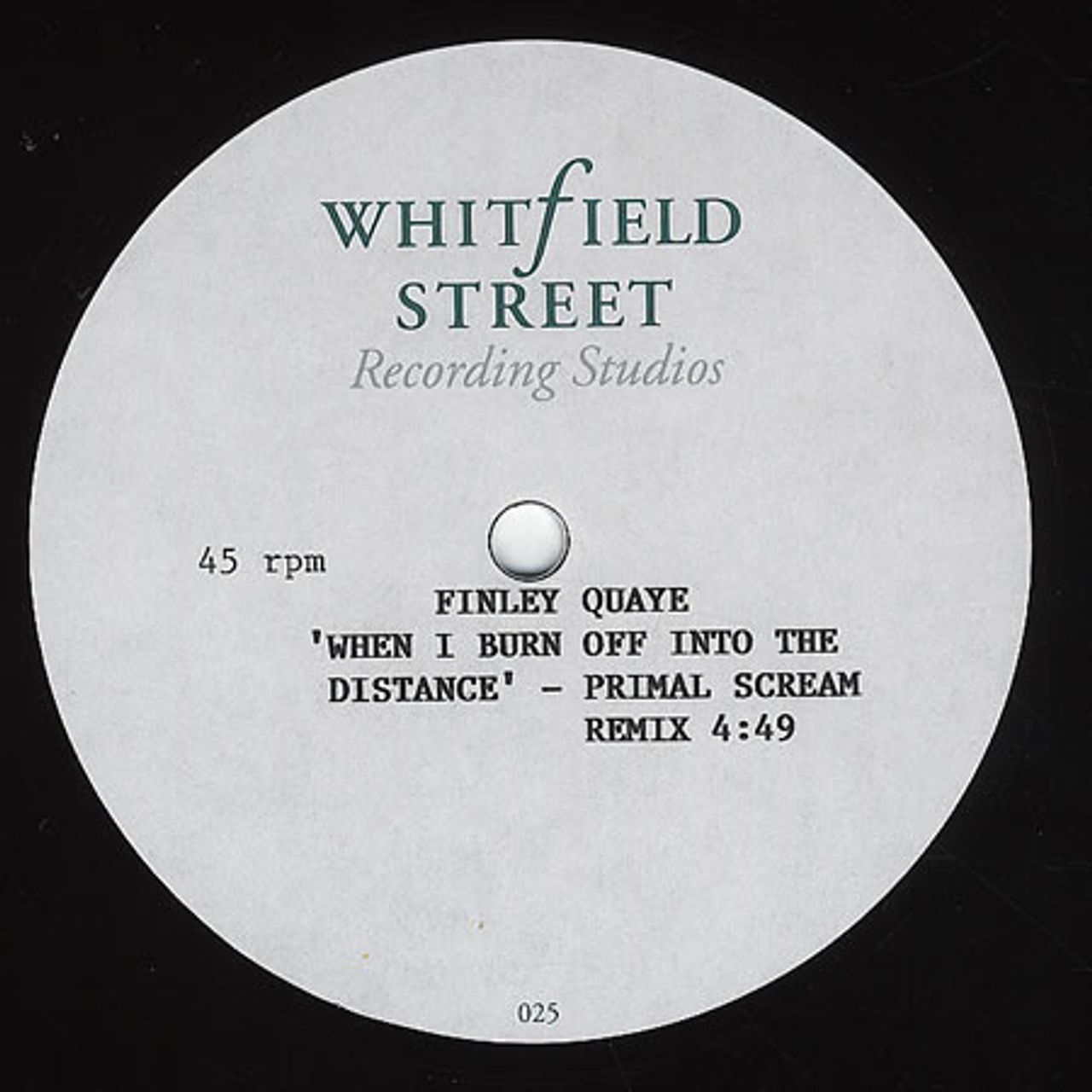Primal Scream Remix 4:49, with a custom studio printed/typed label. A