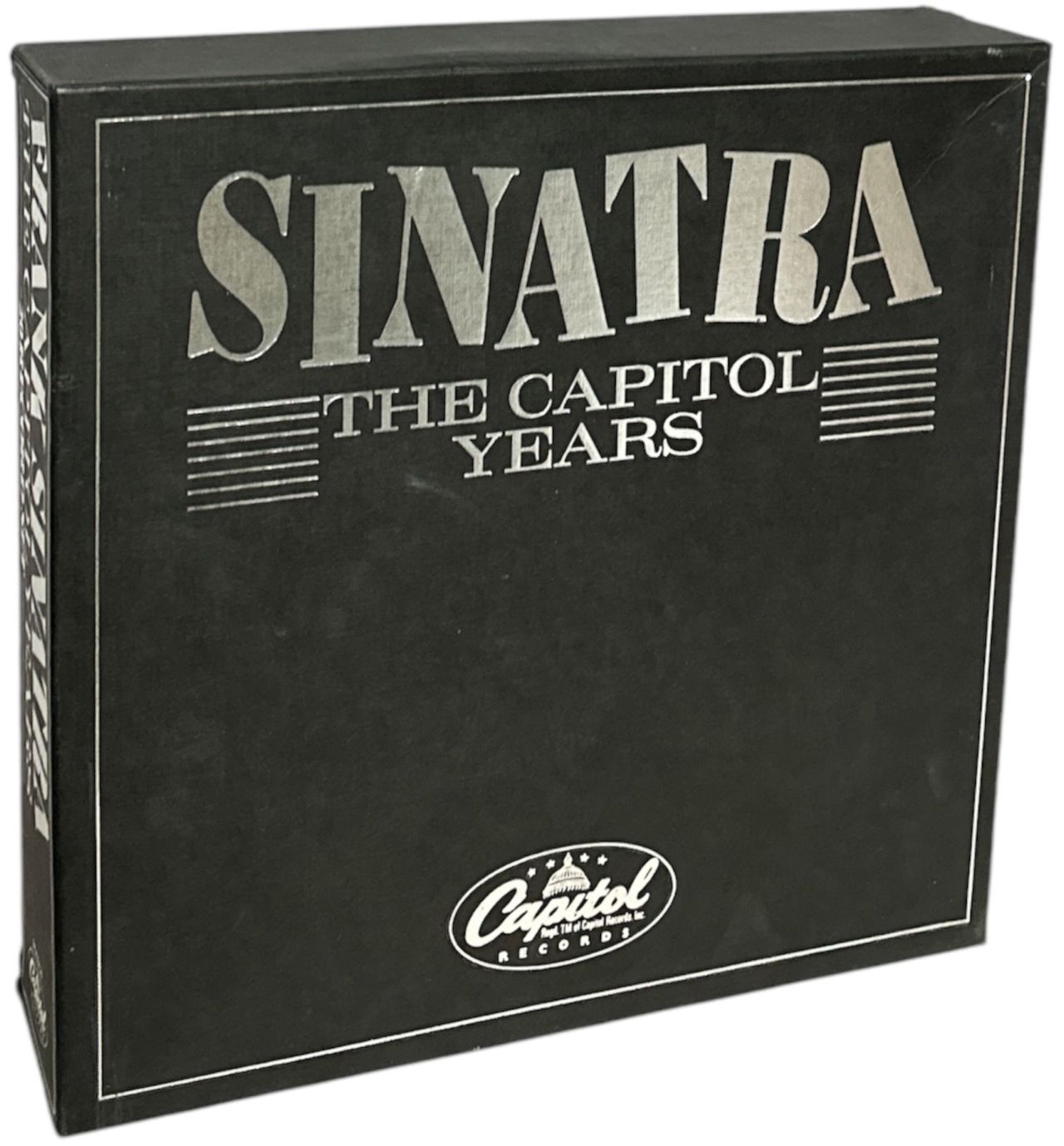FRANK SINATRA The Capitol Years (1985 UK digitally remastered 254-track 20-LP Box Set, with each album housed in its respective picture sleeve. A hefty tome indeed, each glossy sleeve replicates the original album's artwork & come housed in a large textured & silver embossed deluxe box, complete with a lovely 20-page illustrated booklet & bonus flyer insert. The packaging is in Excellent condition with mild signs of shelfwear, mainly to the sides and back, with tiny corner splits evident under closer inspection, whilst all contents remain in Near Mint! Highly recommended - What better evidence than this to substantiate the claim that Sinatra was the finest male singer of the 20th century? See 'more info' for a chronological list... SINATRA20)