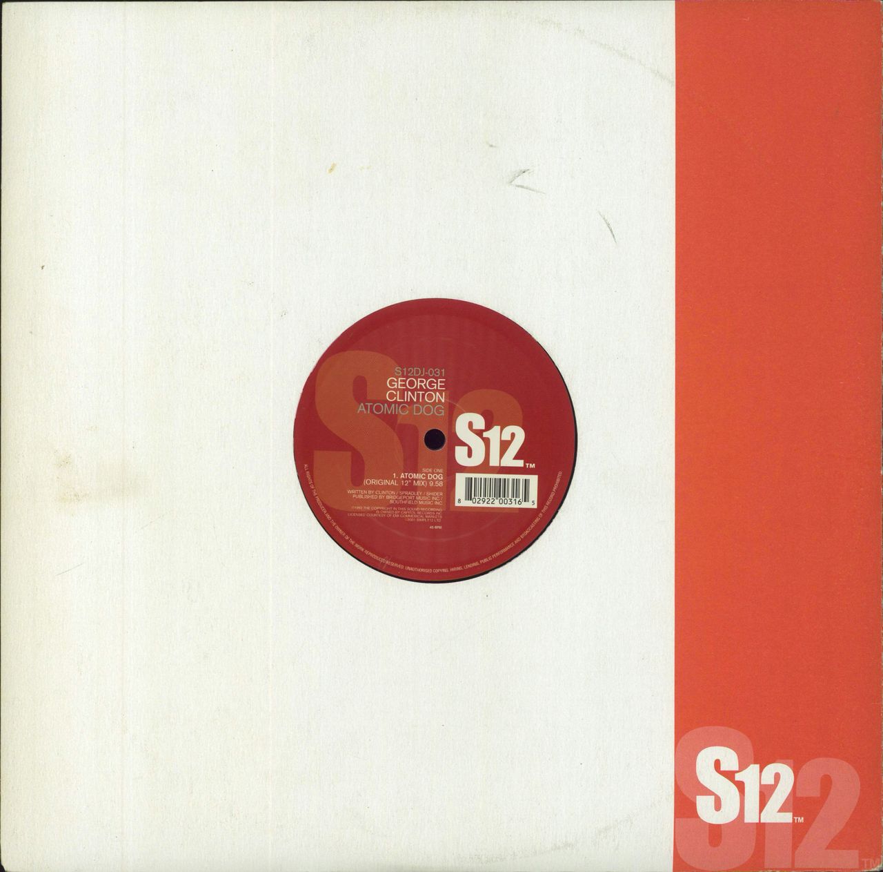 GEORGE CLINTON Atomic Dog/Loopzilla (2001 UK 2-track vinyl 12", also featuring Loopzilla, presented in a thick company card sleeve. The sleeve shows a little shelf/ringwear whilst the vinyl shows only light signs of play S12DJ-031)