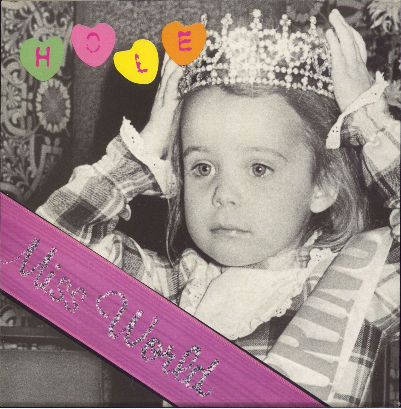 HOLE Miss World (1994 German limited edition 7" single pressed on PINK VINYL, taken from the Live Through This album, also includes Rock Star - Alternative Mix, picture sleeve with lovehearts band logo. Thesleeve and vinyl shows some light tear to the label whilst the play surface remaining near mint)