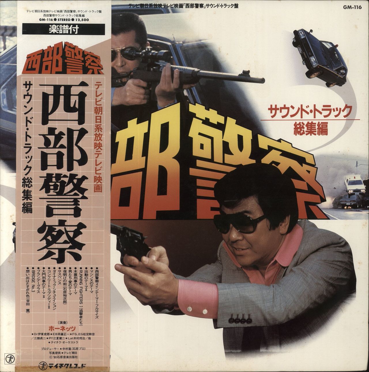 ORIGINAL SOUNDTRACK Seibu Keisatsu (1980 Japanese 14-track vinyl LP, the score for the TV detective show by Hornets, featuring funky breaks, gatefold picture sleeve with sheet music insert and obi-stip. The sleeve shows light wear, there is atape repair to the bottom of the obi, whilst the vinyl appears barely played GM-116)