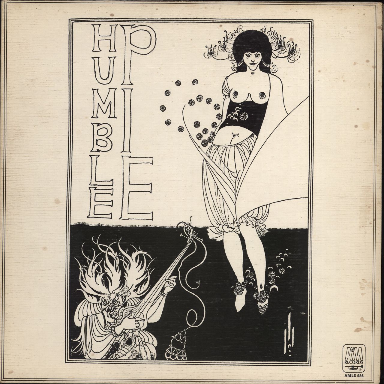 HUMBLE PIE Humble Pie (Rare 1970 first UK issue 8-track stereo vinyl LP on the tan A&M label with A1/B1 matrices, featuring the gentle Earth & Water Song [by Peter Frampton] buttressed between the ultra heavy numbers, One Eyed Trouser Snake Rumba & a blinding cover of Willie Dixon's I'm Ready; textured gatefold picture sleeve with magnificent artwork illustrations front & back. The sleeve has some spots of discolouration to the mostly white front with only other light signs of wear.The vinyl has a just a few light hairlines & marks, not excessive & has no real effect on play, whilst the labels have just a few spindle marks. Although not mint, this is still a really nice example and an ideal play copy AMLS986)