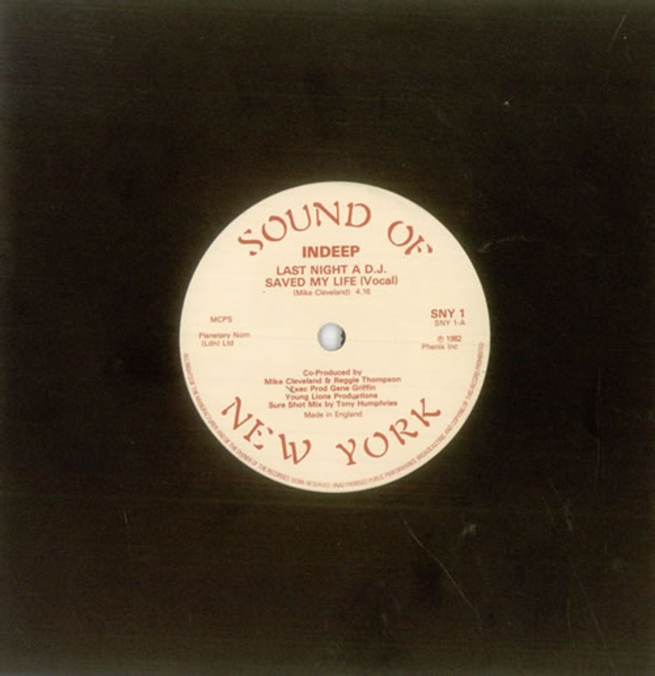 INDEEP Last Night A DJ Saved My Life (1982 UK 7" vinyl single - a great copy of the classic disco single, also including DJ Delight - Instrumental, plain die-cut paper sleeve. The sleeve shows a little shelf/ringwear whilst the vinyl shows only light signs of play SNY1)