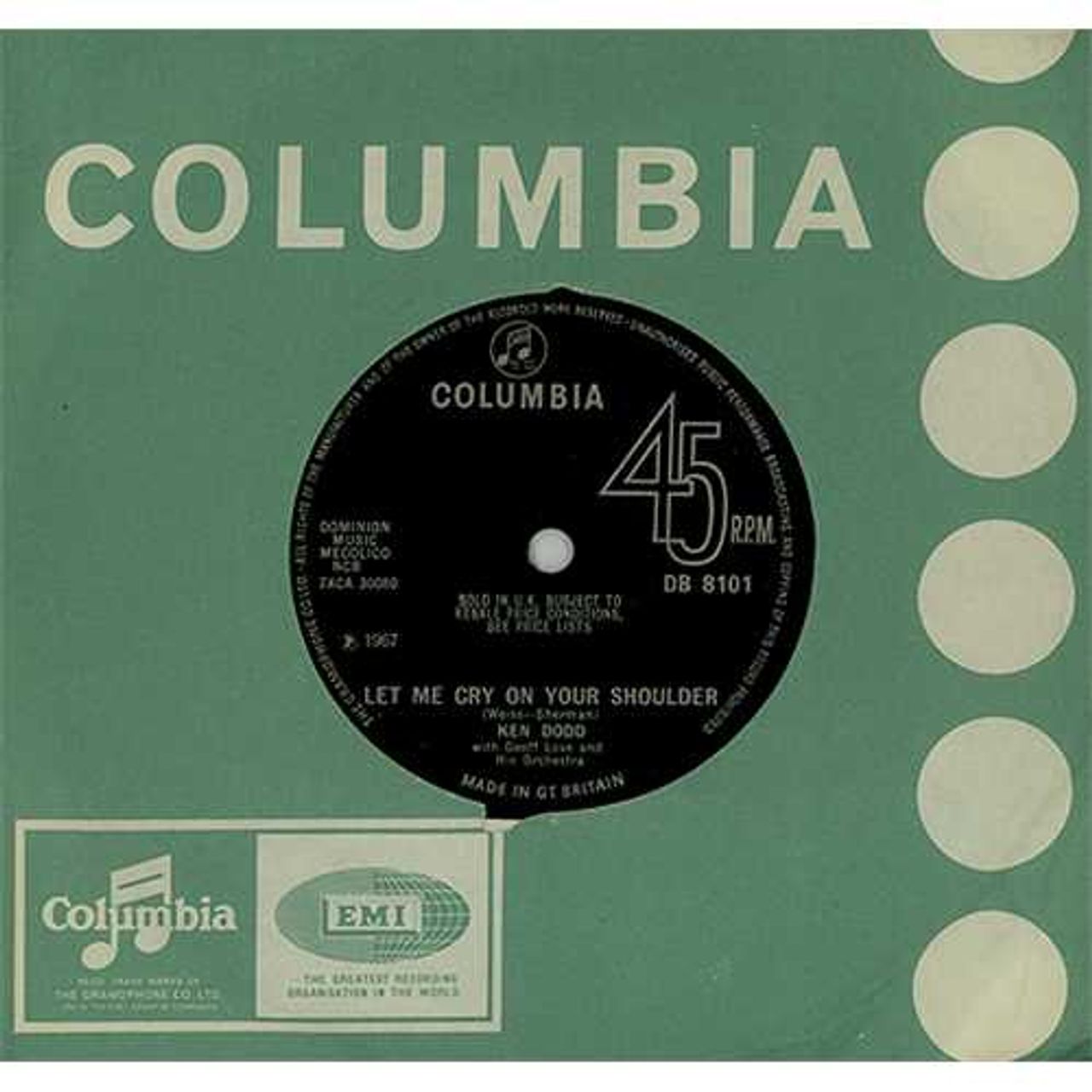 KEN DODD Let Me Cry On Your Shoulder (Original 1967 UK solid centre 7" vinyl single also featuring [I Am] Two Kinds Of Fool in generic Columbia company paper sleeve DB8101)