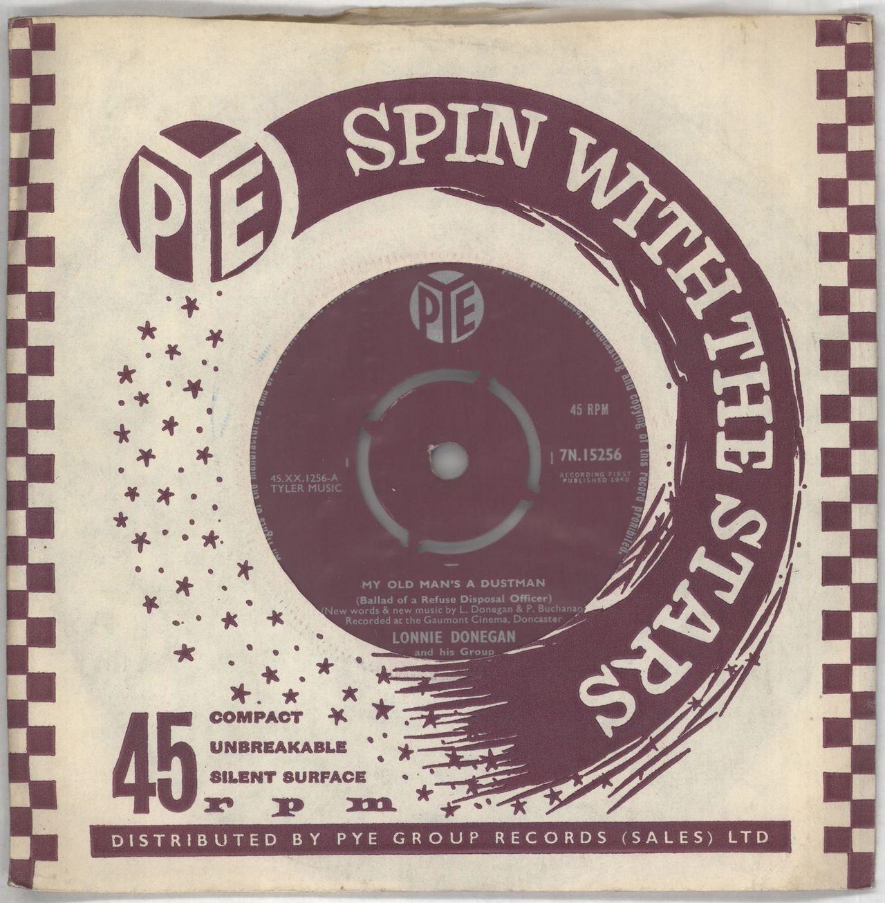 LONNIE DONEGAN My Old Man's A Dustman (Classic 1960 UK 7" single with four-prong centre, also including The Golden Vanity, record company die cut paper sleeve. The vinyl displays just some light spindle marks to show play 7N.15256)