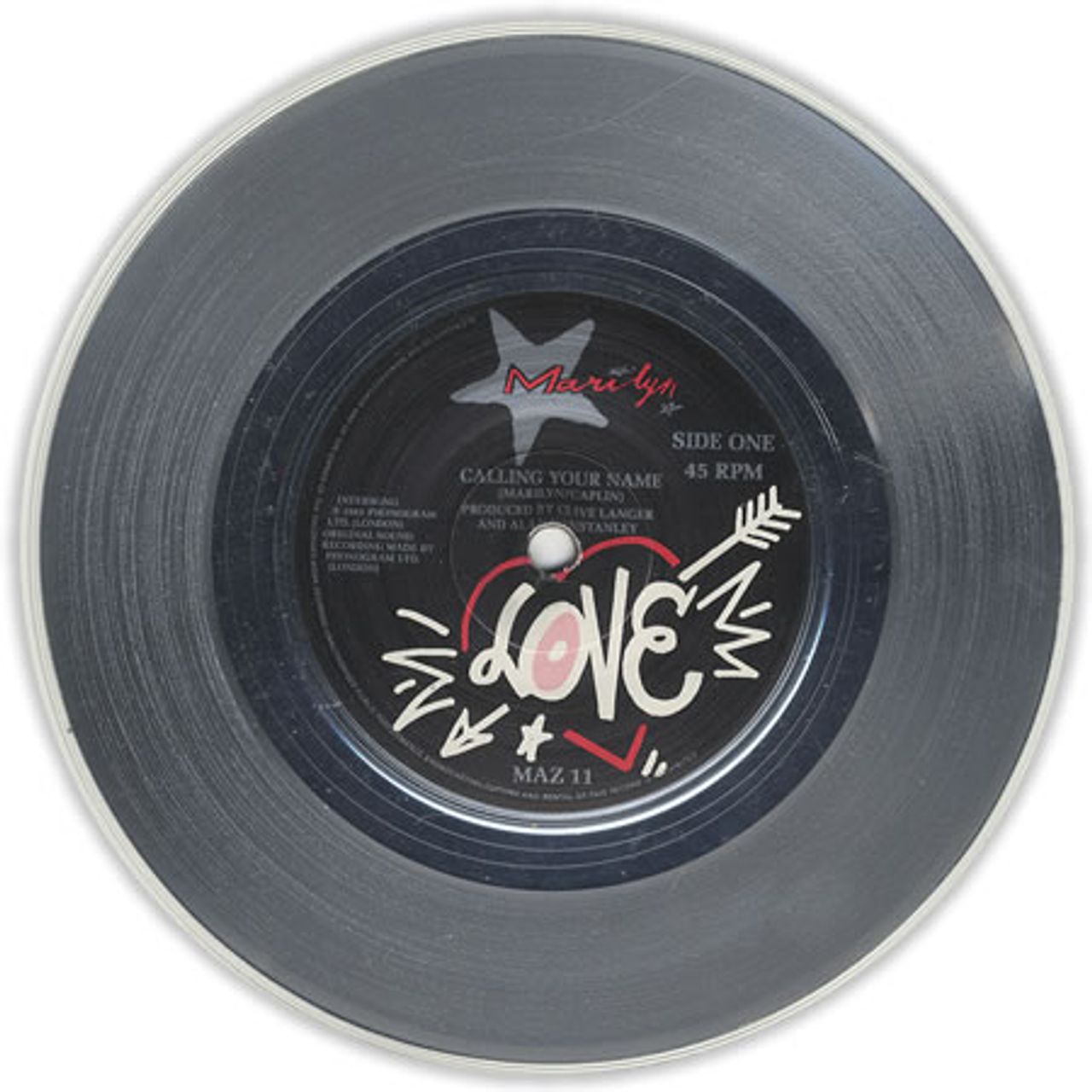 MARILYN Calling Your Name (1983 UK limited edition 7" single pressed on SILVER VINYL, also including Move Together, clear PVC sleeve MAZ11)
