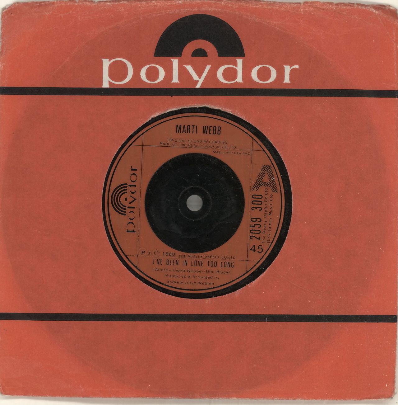 MARTI WEBB I've Been In Love Too Long (1980 UK injection moulded 7" vinyl single, also including Nothing Like You've Ever Known, record company die-cut paper sleeve)
