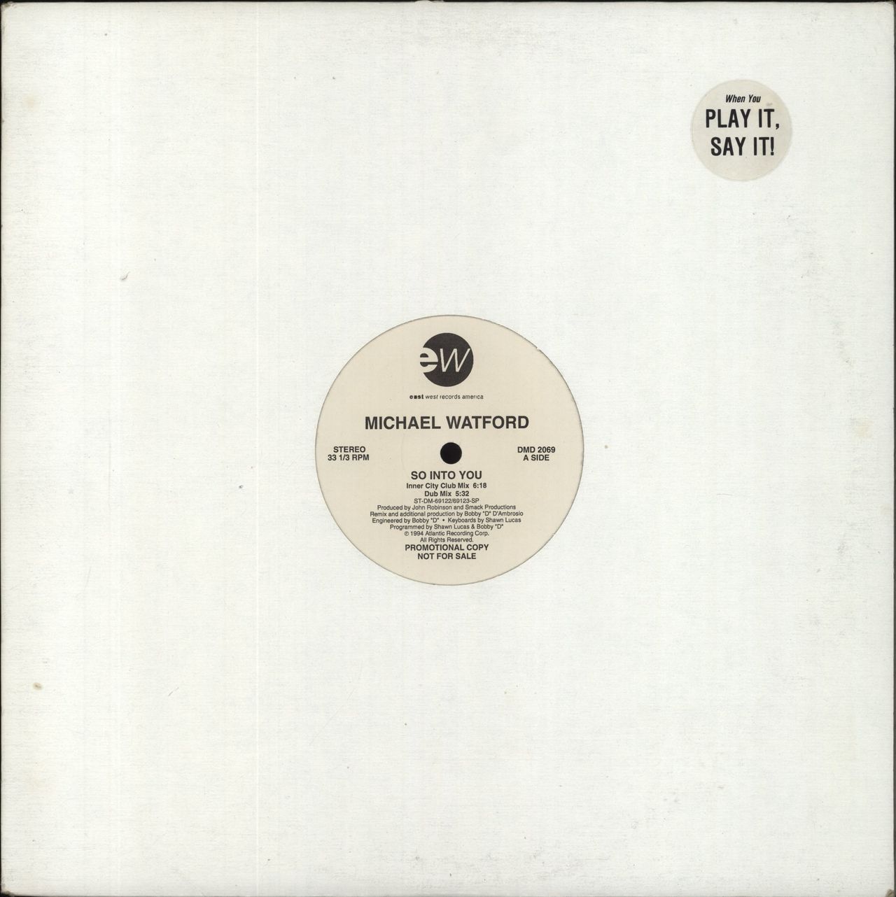 MICHAEL WATFORD So Into You (1994 UK 4-track white label promotional vinyl 12", featuring the Inner City Club Mix, Dub Mix, Classic Club Mix and Inner City Radio. With custom printed labels and housed in a plain die-cut card sleeve DMD2069)
