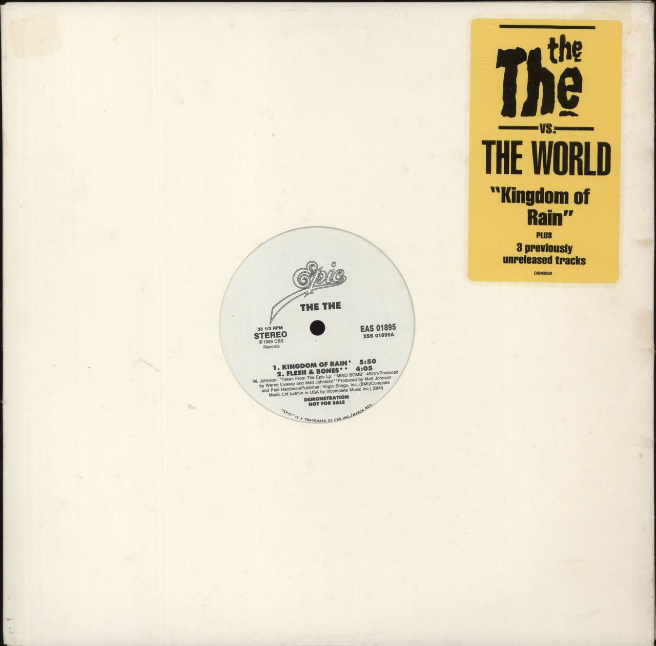 THE THE Kingdom Of Rain (1989 US 4-track promotional vinyl 12", also including the previously unreleased Flesh And Bones, Nature Of Virtue and Waitin' For The Upturn, custom title stickered die-cut card sleeve EAS01895)